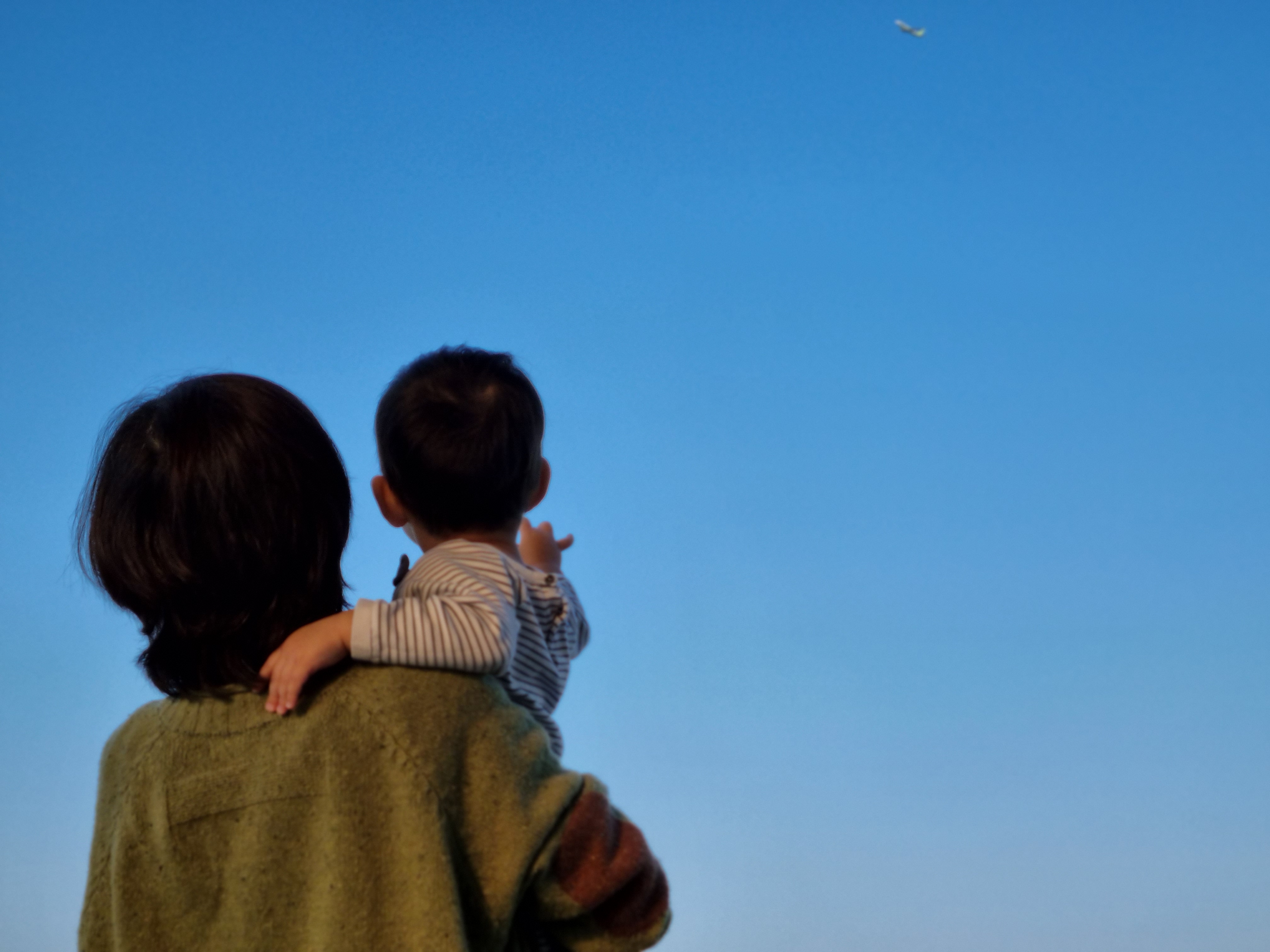 뻥 뚫린 하늘을 가로지르는 비행기를 보며