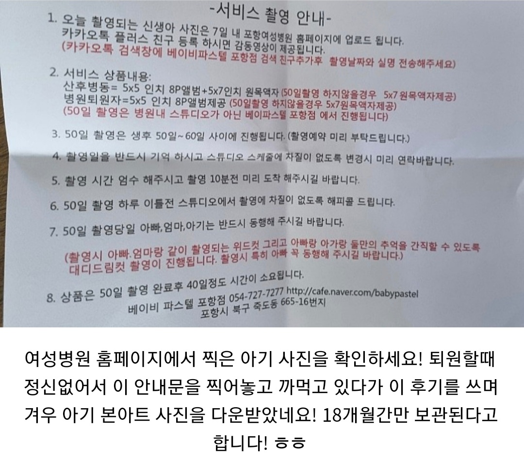 10시 전후로 온 남편과 함께 짐, 아가를 챙겨 병원 2층 베이비파스텔 사진 찍는 곳에서 사진을 찍고 집으로 가면 정말 끝~! 이네요!