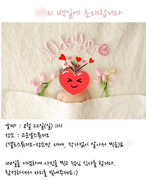 다시 하래도 둘째 백일상은 고운 날 스튜디오에서 할 거에요~! 적극 추천~! 다시 한 번, 사장님 흥하세요~!