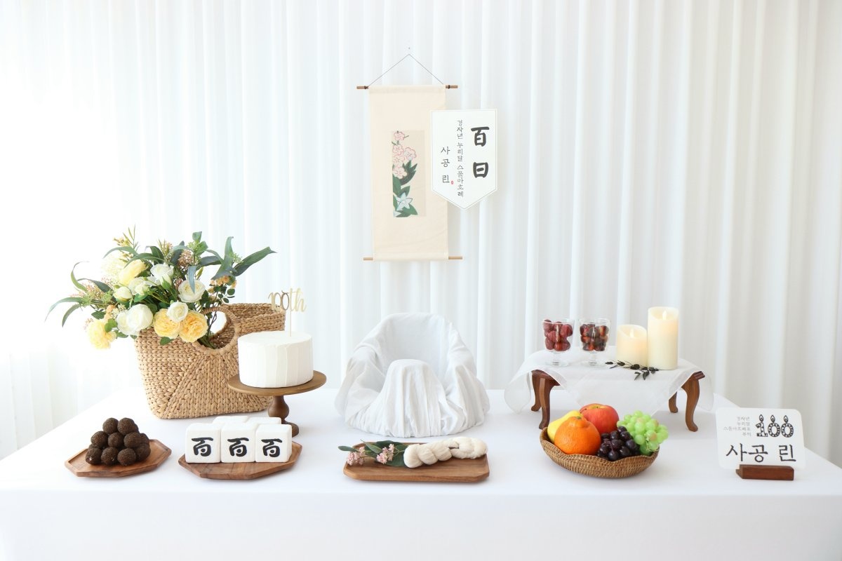 때는 바야흐로 2020년 초... 첫째의 백일상을 준비했어요. 여러 백일상을 비교, 공부(?)해보고 대여 대신 직접 소품을 준비해서 백일상을 차렸어요. 제가 준비했던 '인물 중심' 컨셉의 간결한 엄마
