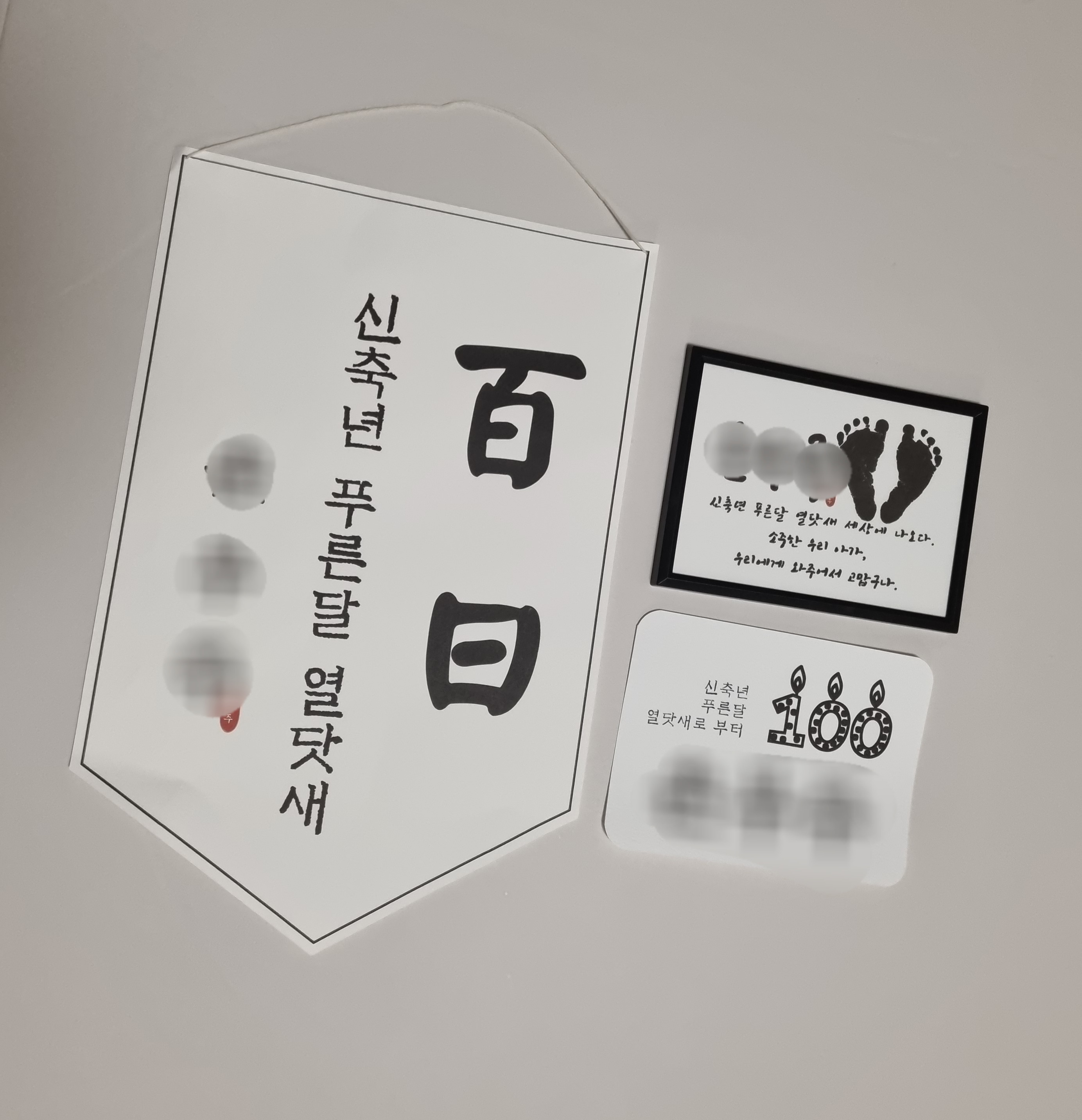 사장님께서 손수 제작하시고 챙겨주신 백일 족자, 발자국 탄생 액자. 감동 ㅠㅠ