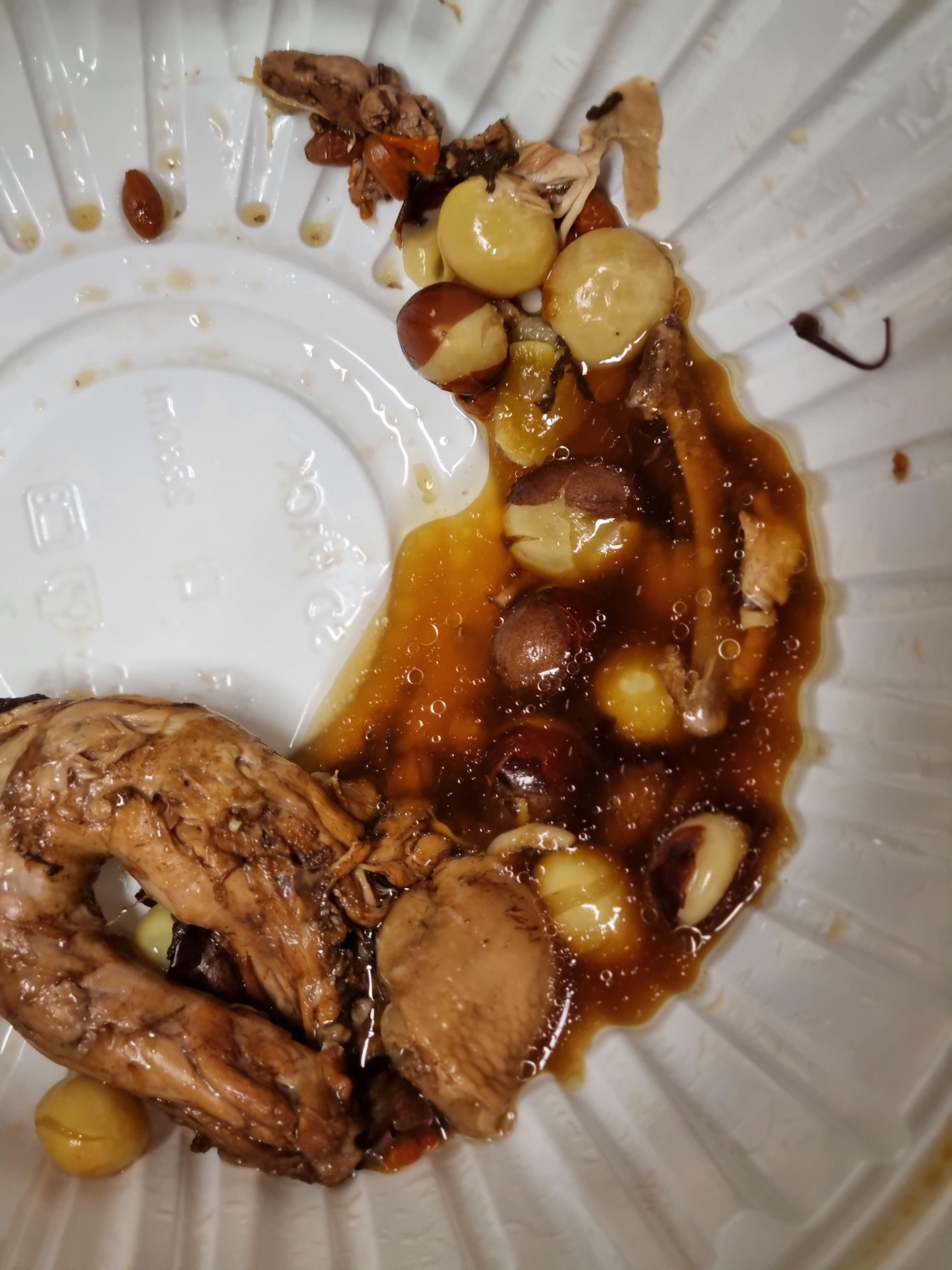 닭을 덜어내고 나니 남은 은행과 약간의 약재들.