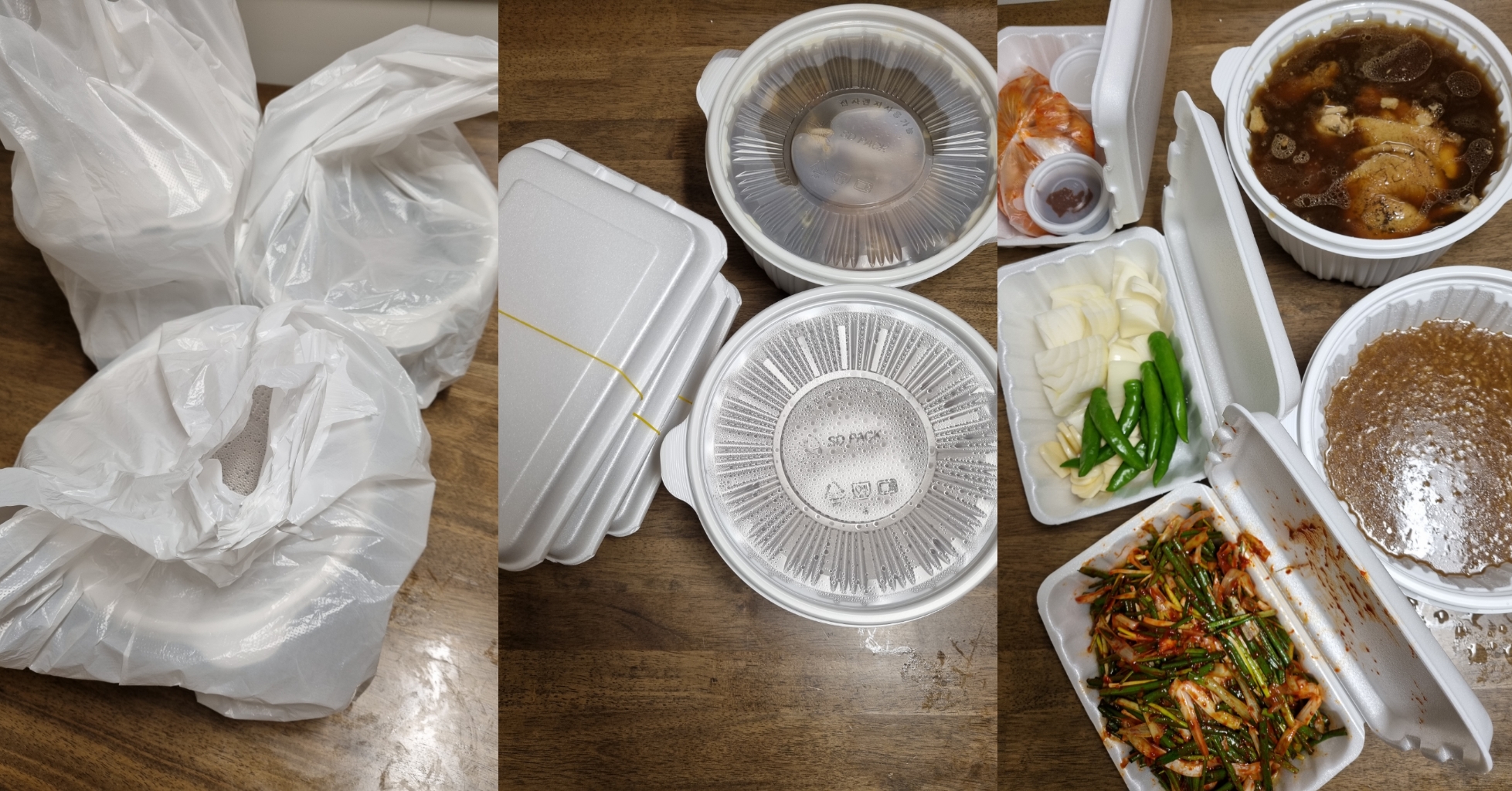 코로나시국 + 두 아기까지 태어난 이후로 외식은 최대한 피하고 있어요! 외식 대신 배달해먹기도 하고, 포장해와서 먹기도 해요.