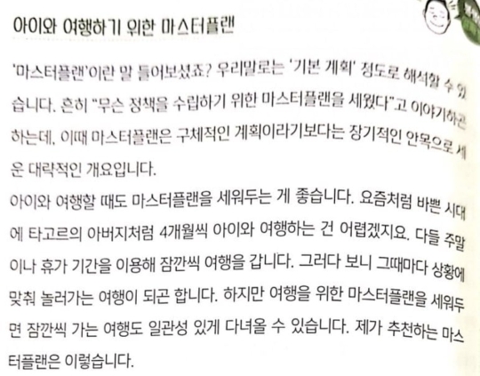 그리고 이 책을 참고해서 저희 아이에 맞는 월령별 여행 마스터플랜을 짜면 - 일종의 루틴 화가 돼서 저희 가족에게는 매 주말, 연휴가 여유 있고 행복할 것이고, 경험한 여행지를 같은 고민이신 부모들께도 공유하면 유용한 도움이 되지 않을까 - 싶어서 실용적인 미션으로 여행지 리스트 만들기를 해볼까 합니다~