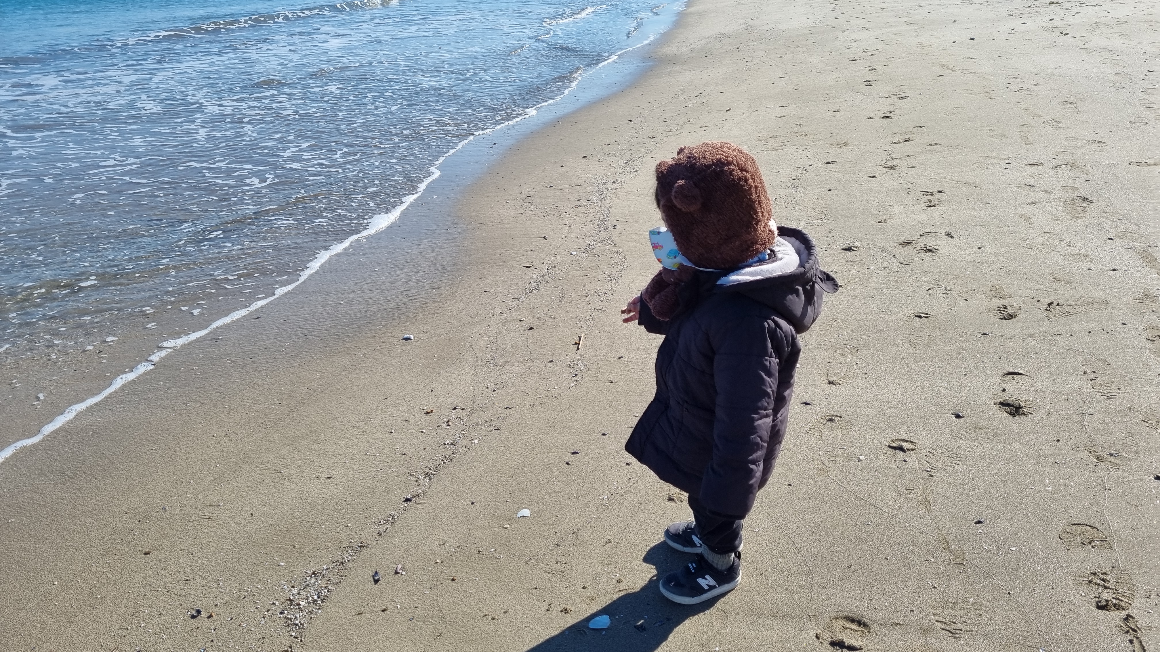 이제 걷기 시작한 돌쟁이 둘째의 첫 바닷가.