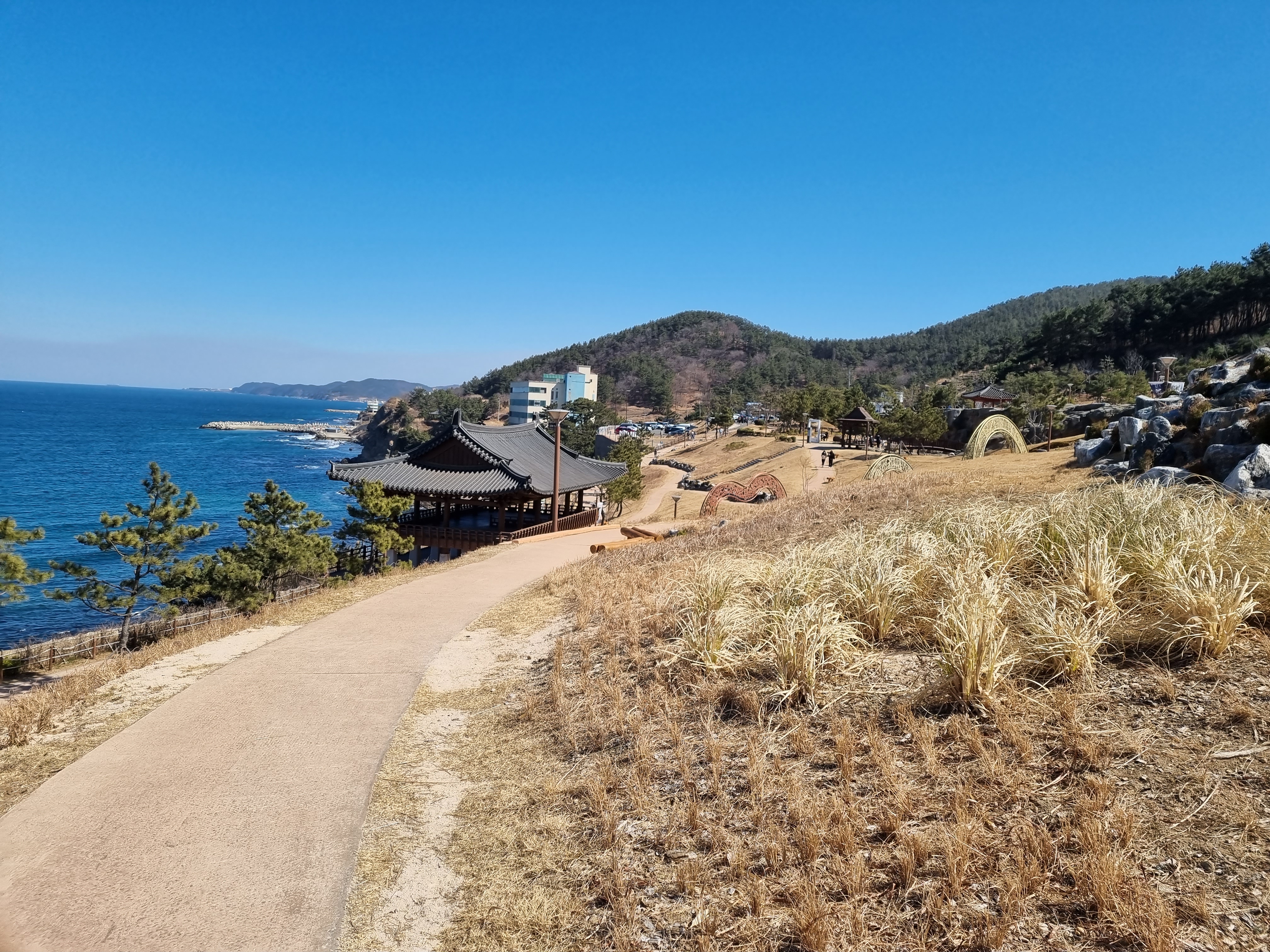 위치가 이렇다보니 걷드보면 멀리 포스코를 비롯한 철강 단지들이 보여요! 뻥 뚫린 바다뷰가 멋진 산책로에요!