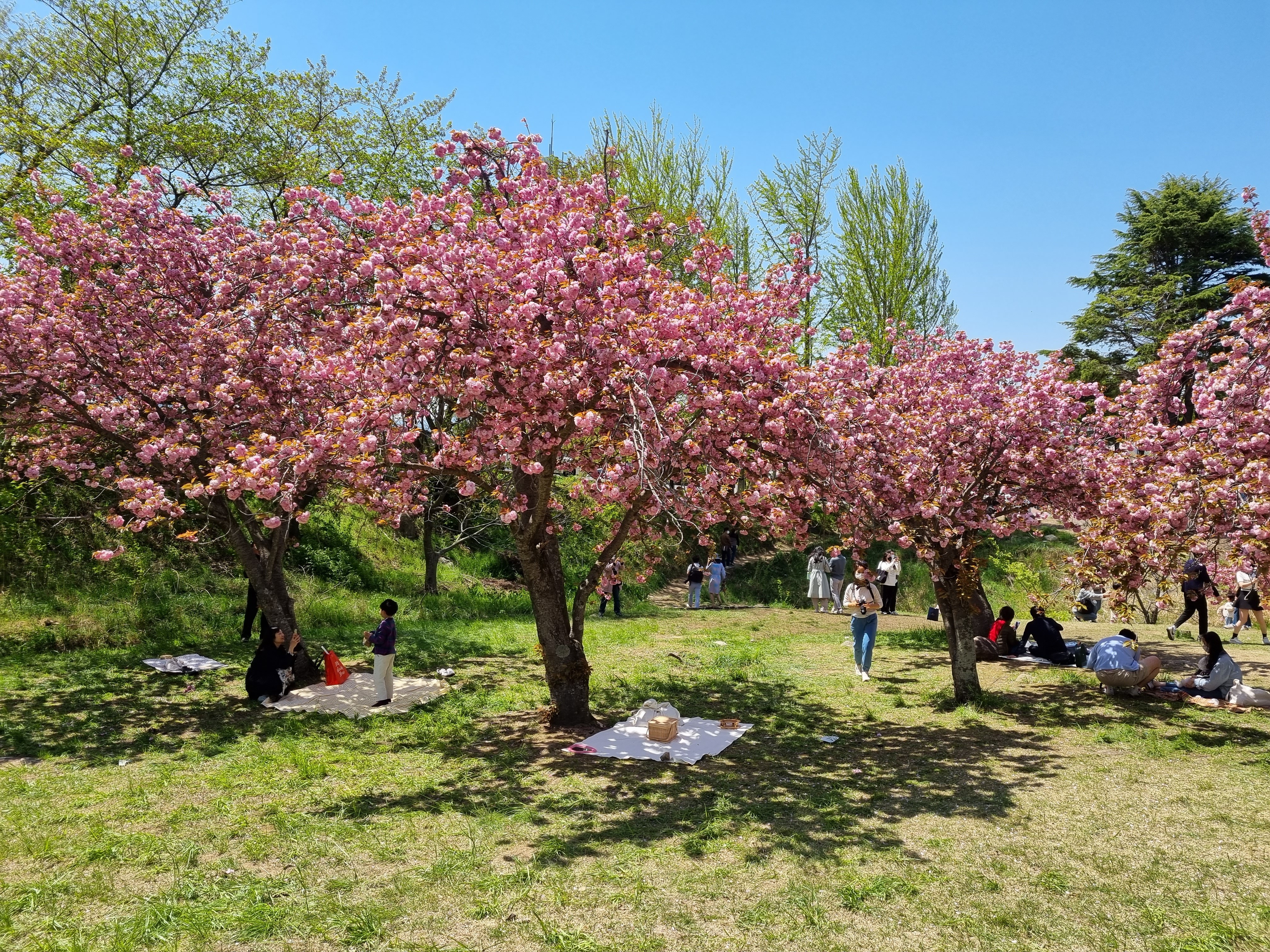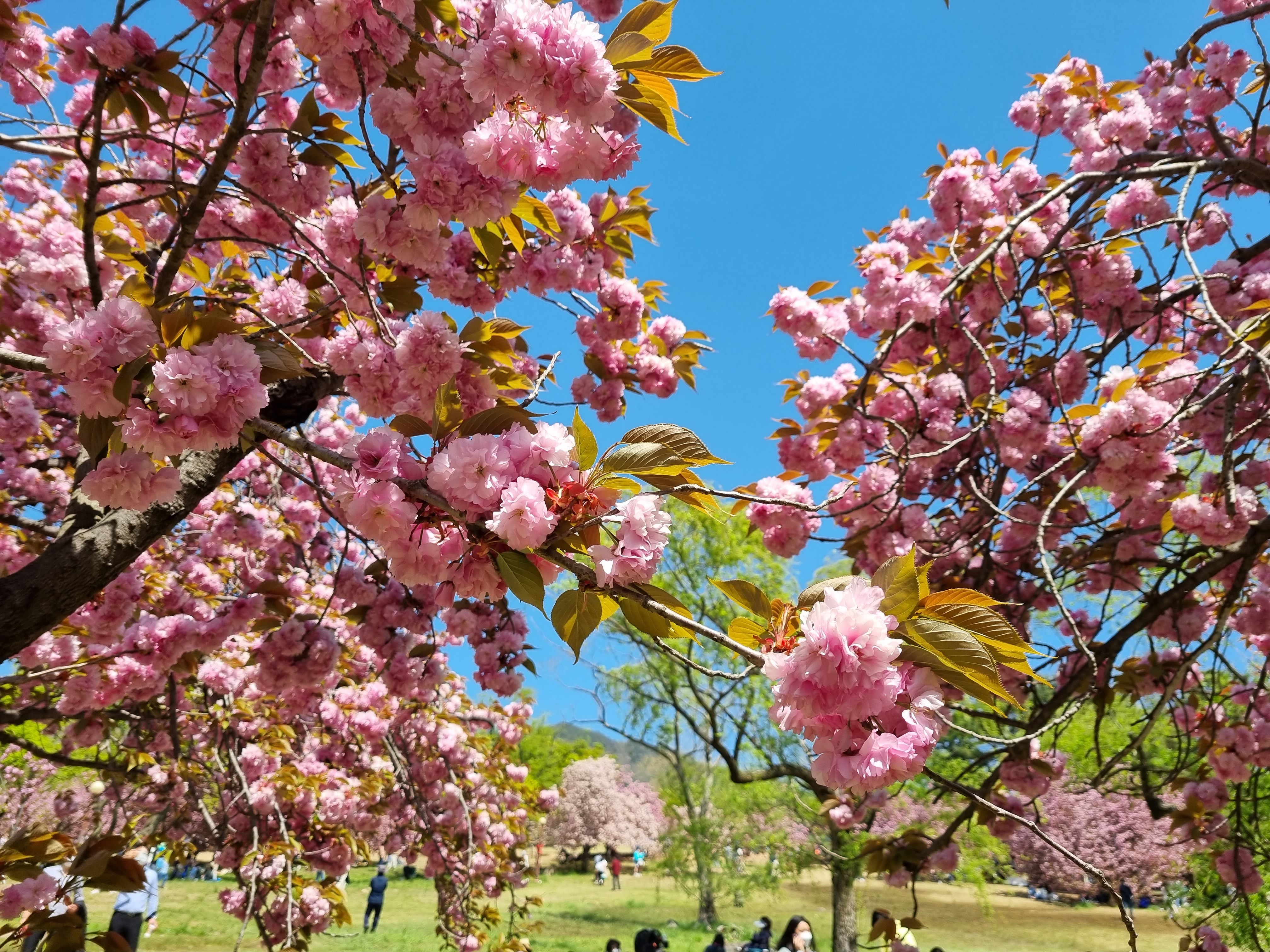(아래 사진에도 보이듯...) 겹벚꽃 나무 수 보다 사람 수가 훨씬 더 많다!!!