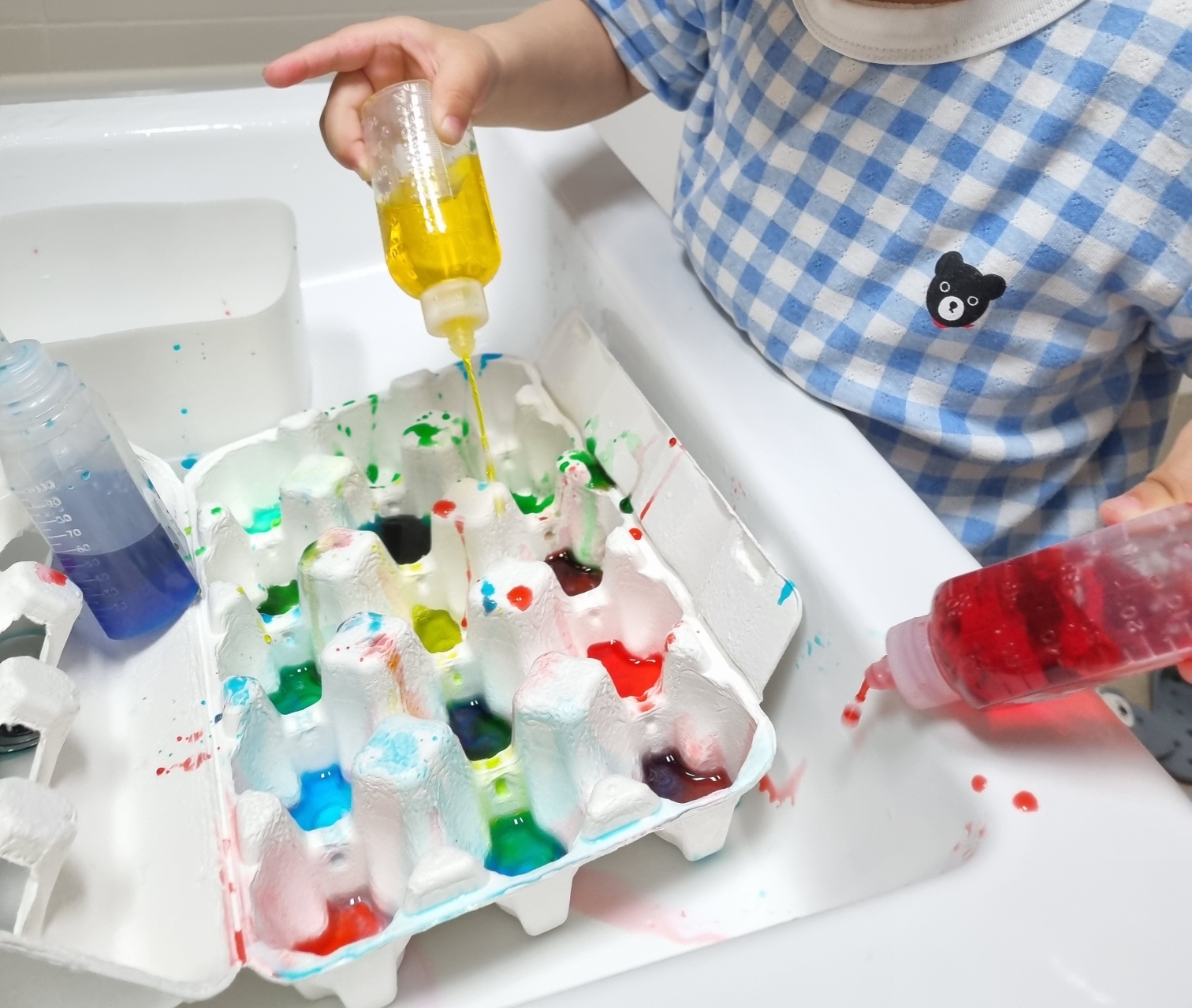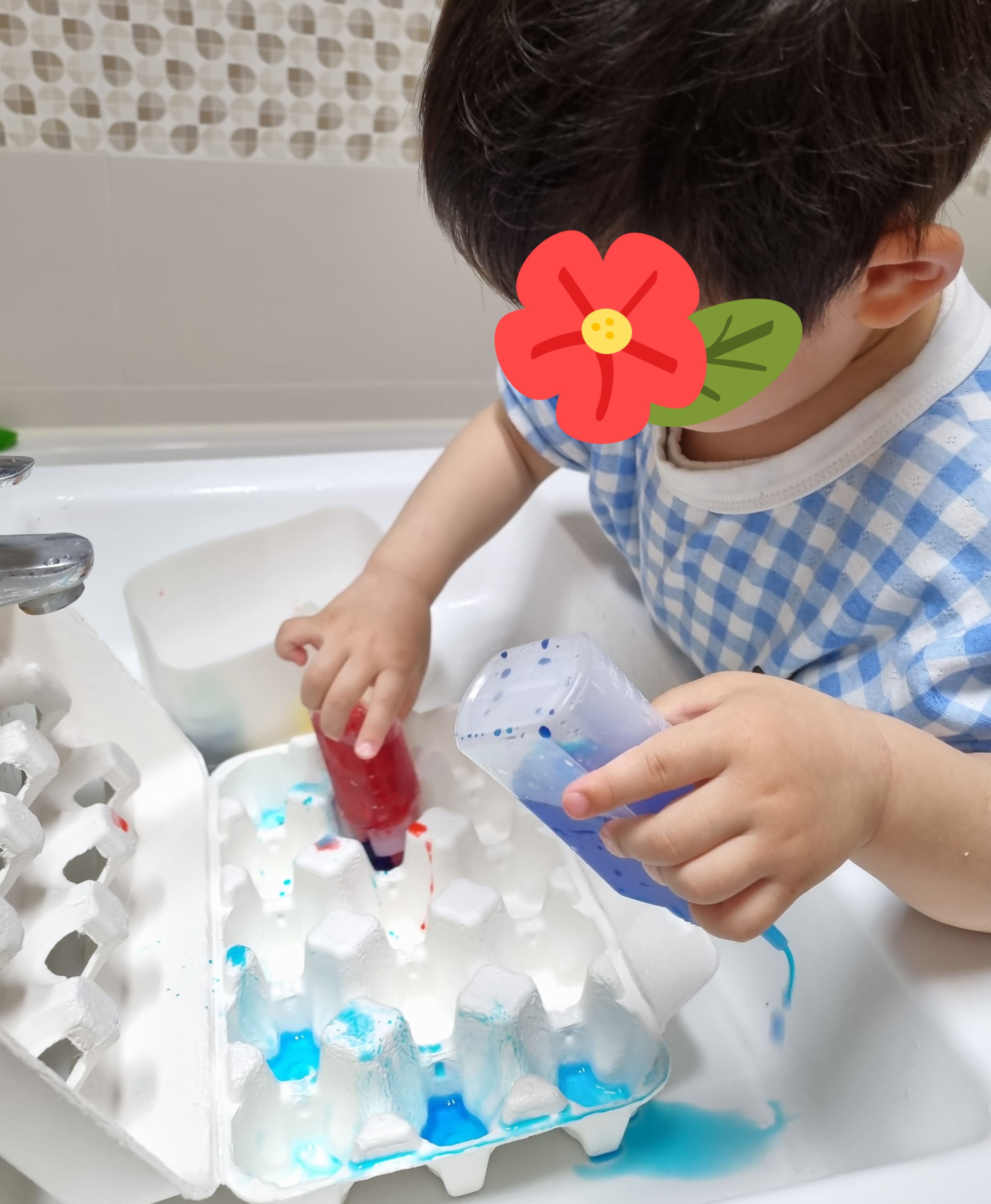 물감, 물약통만 봐도 좋아하고 즐거웠던 기억을 떠올리는 모습이 엄마로써 뿌듯하고 엄마도 즐거웠던. 어디 묻을까 싶어 전전긍긍하며 아이를 보는 것이 아닌, 아이가 하고싶어하는 걸 마음껏 하게 하고 한 발짝 떨어져 보는게 좋은 시간이었음.