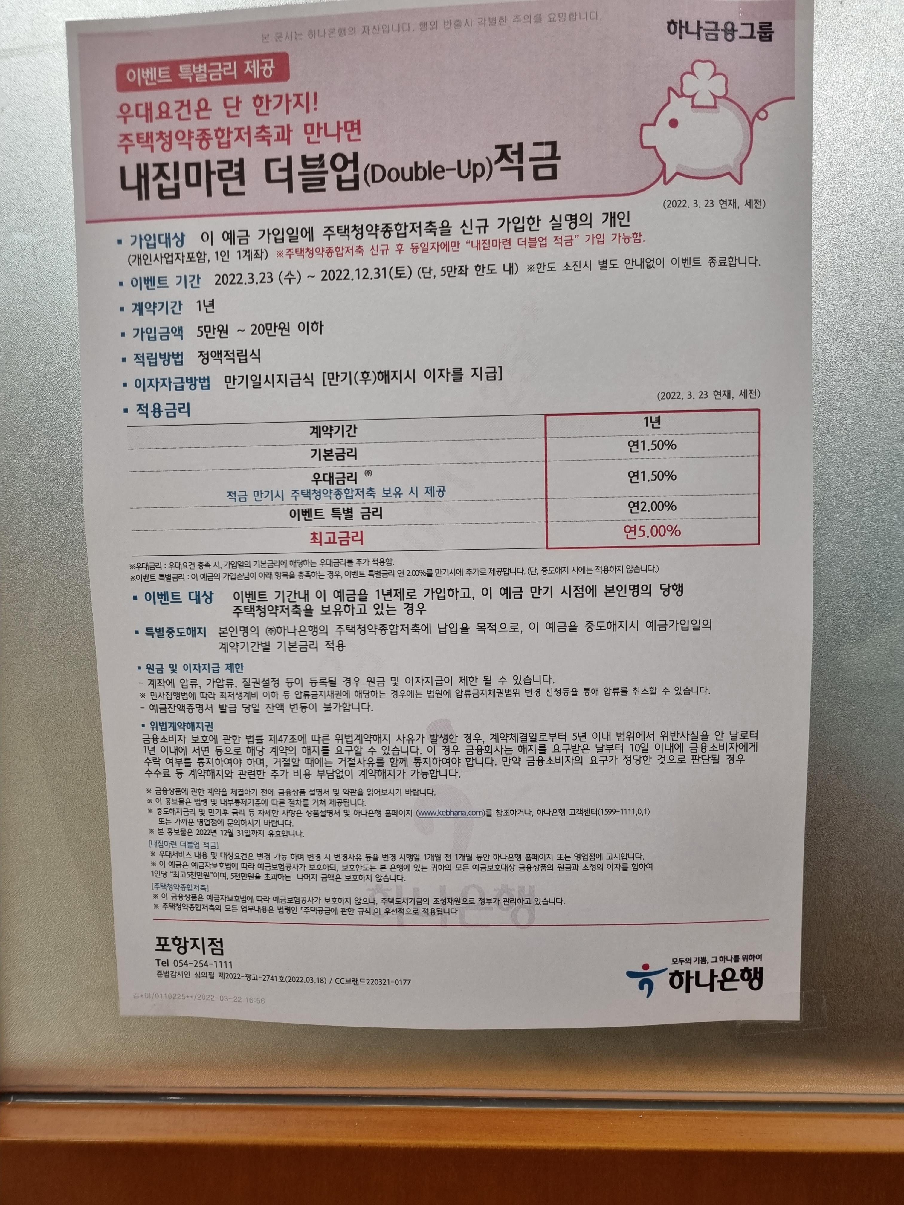 이제 띠도장 예약시 수령신청했던 은행지점 - 포항 오광장점 하나은행으로 가보았습니다.