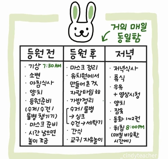 시간표는 없으나 매일 비슷한 패턴.