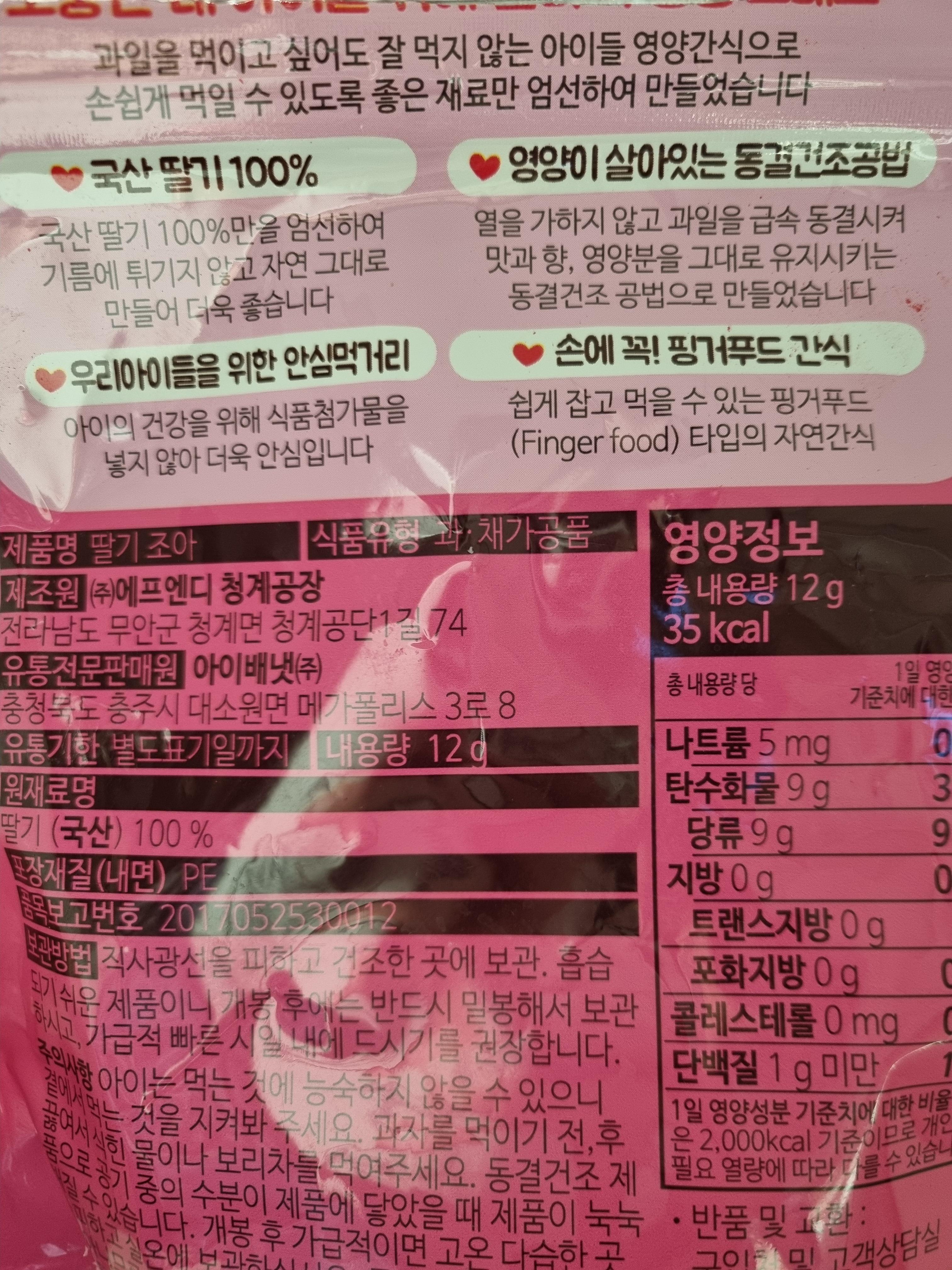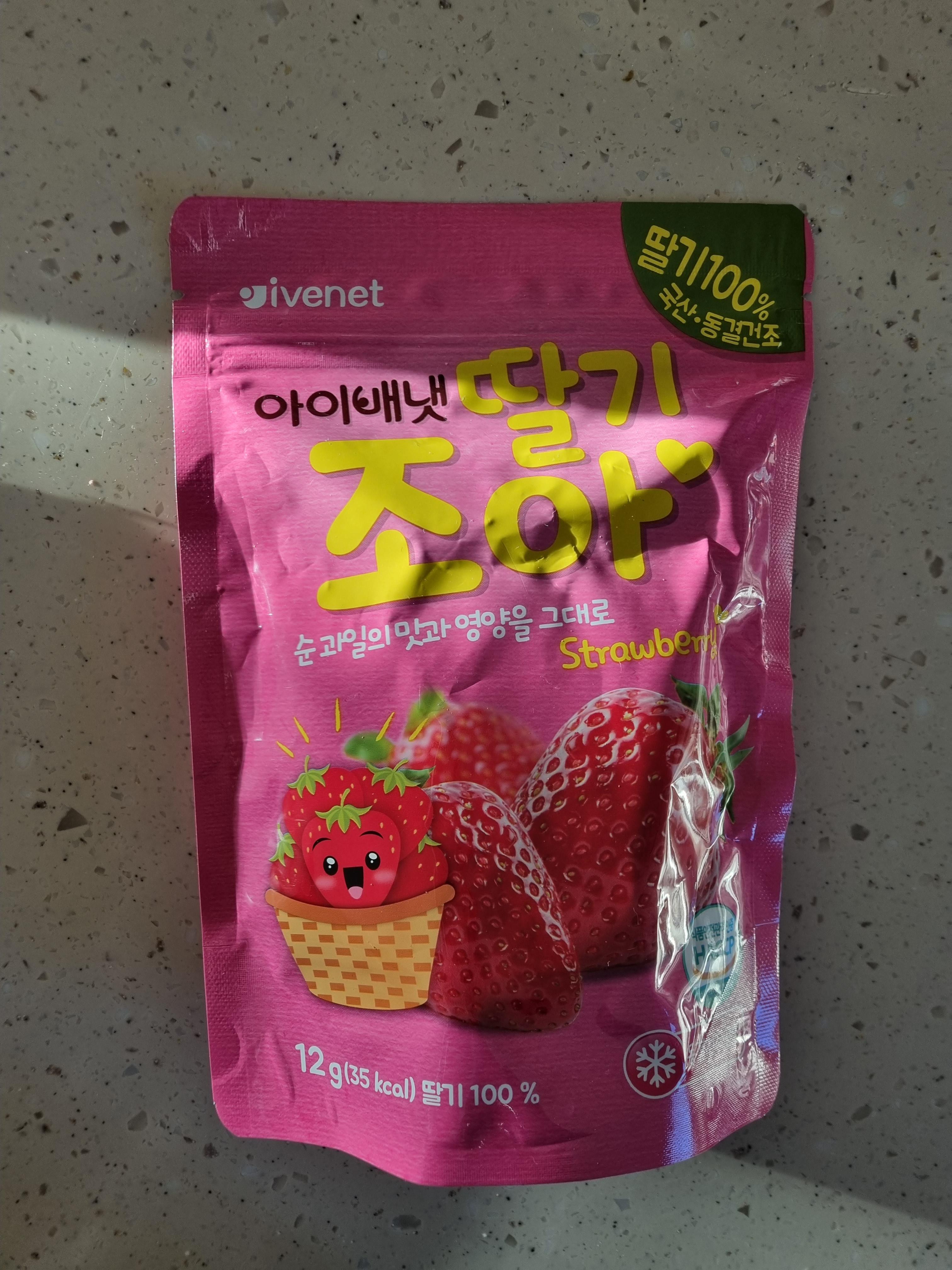 다양한 종류가 있지만 아이가 잘 먹어서 사 놓는 과일칩 중의 하나. 아이배냇 딸기조아.