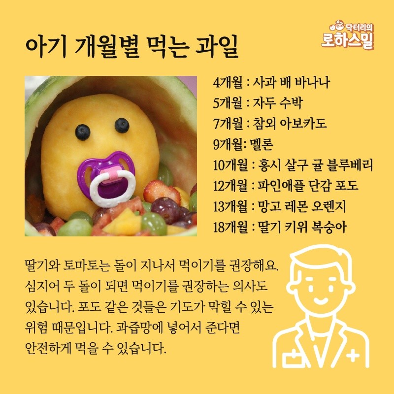 개월별 먹일 수 있는 과일이 있다.