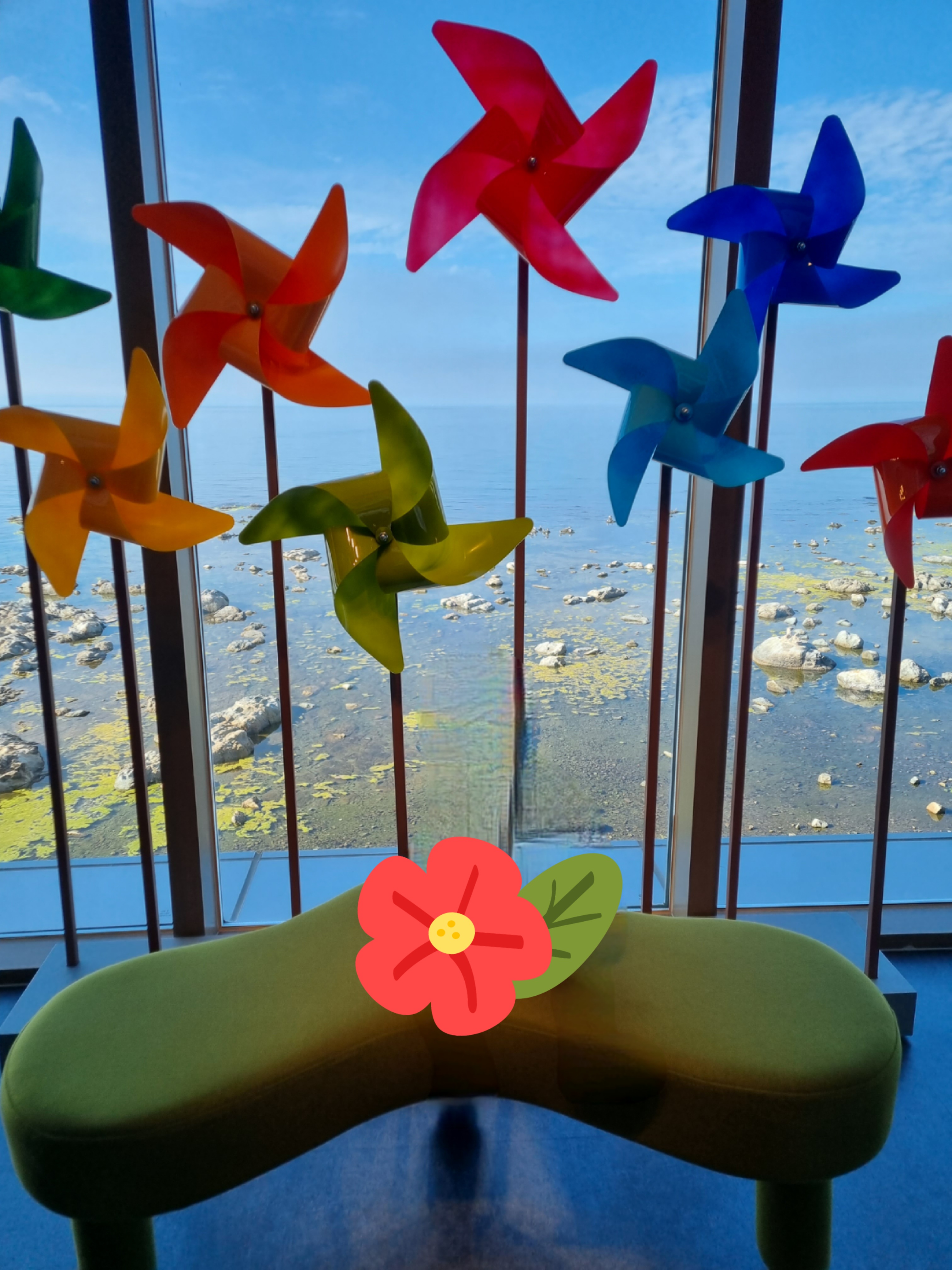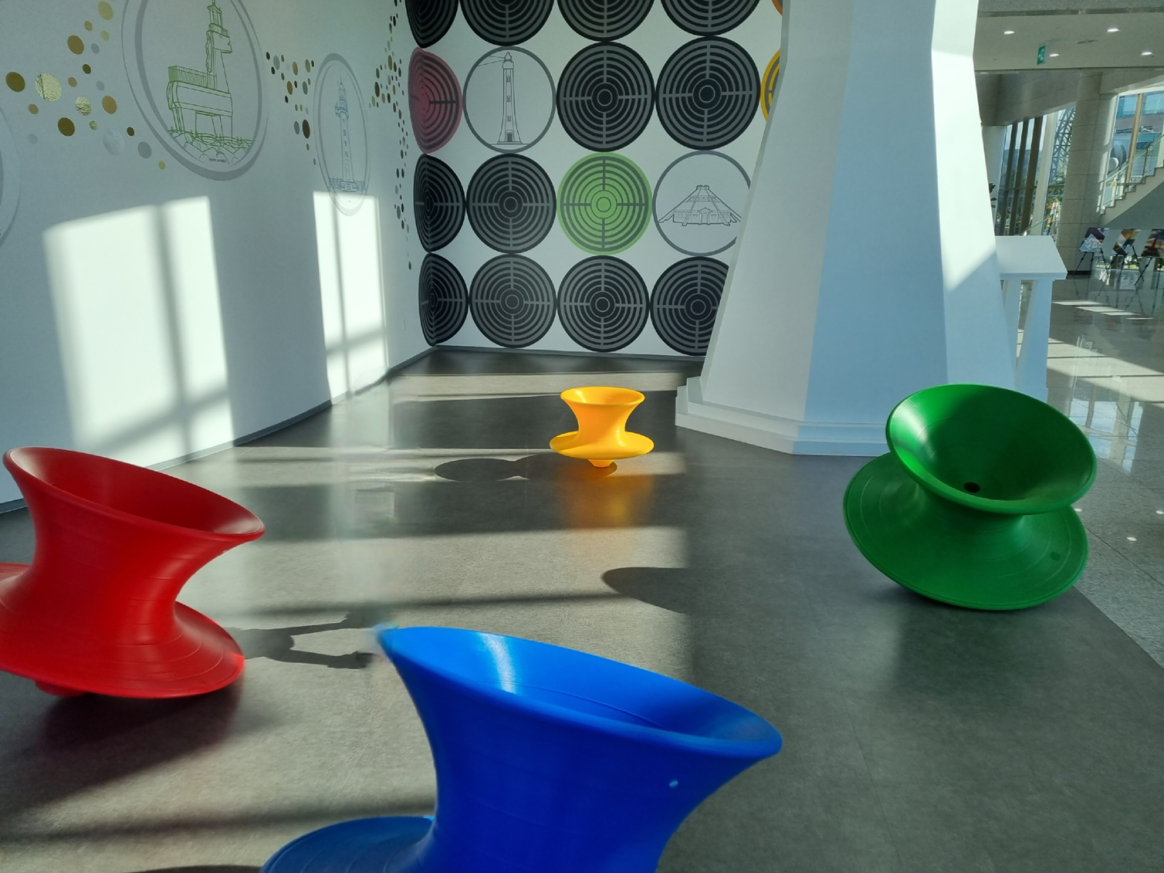 박물관일까? 미술관일까? 싶은 나사모양의 의자였어요. 앉기에는 조금 불편해서 잠깐 앉아봤다가 서서 창밖 풍경을 보았어요~