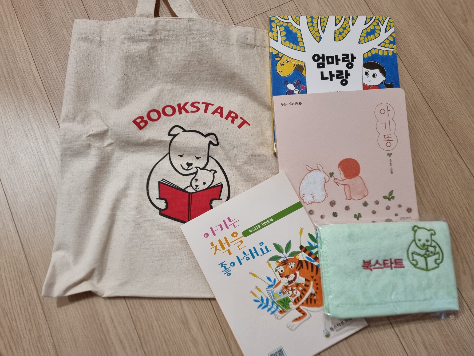 : 에코백, 북스타트사업 소개 책자 1부, 극세사재질 미니 타올 1장, 그림책 2권