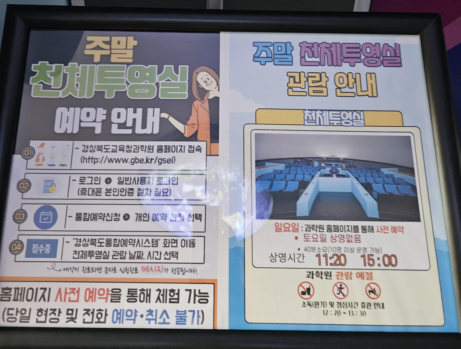 [포항아이랑체험] 경상북도교욱청과학원 주말 천체투영실 정보