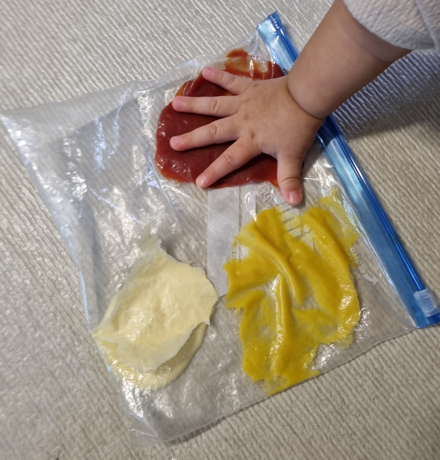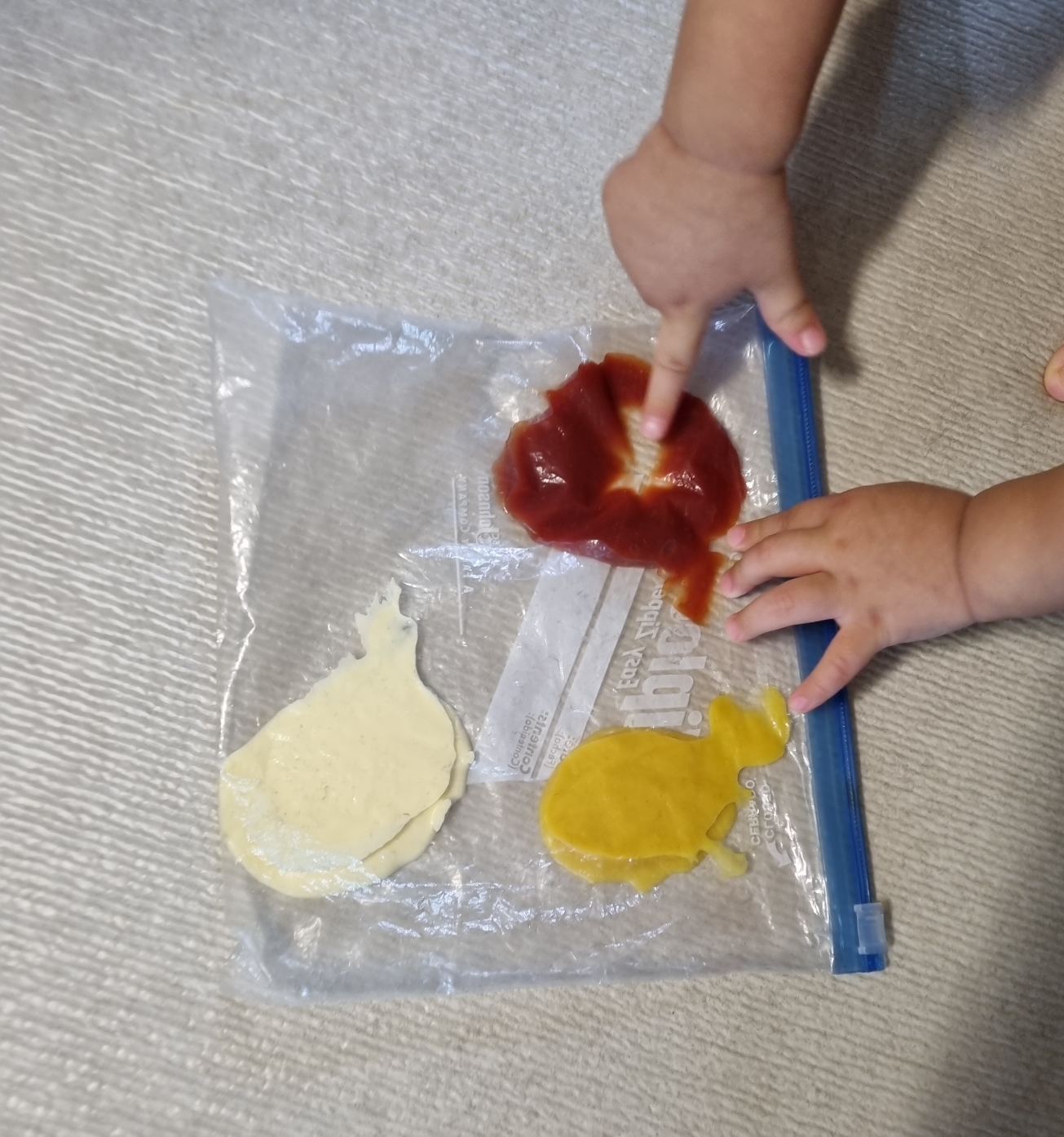 손 협응에 따라 색(소스) 이 퍼지고 섞이는 것을 관찰.
