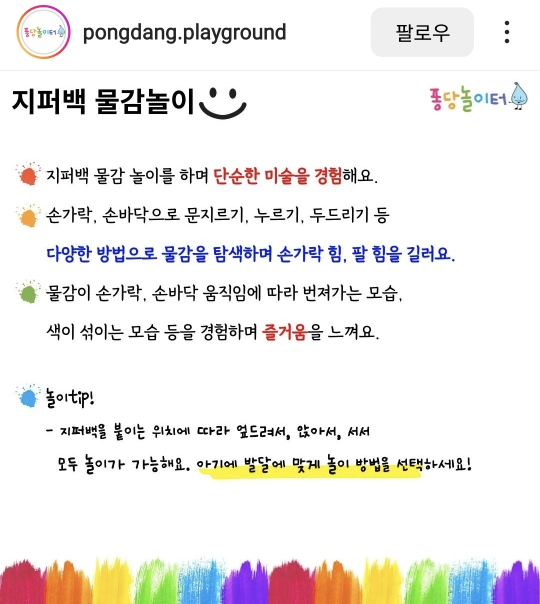 원래는 지퍼백 안에 색색깔의 물감을 짜주고