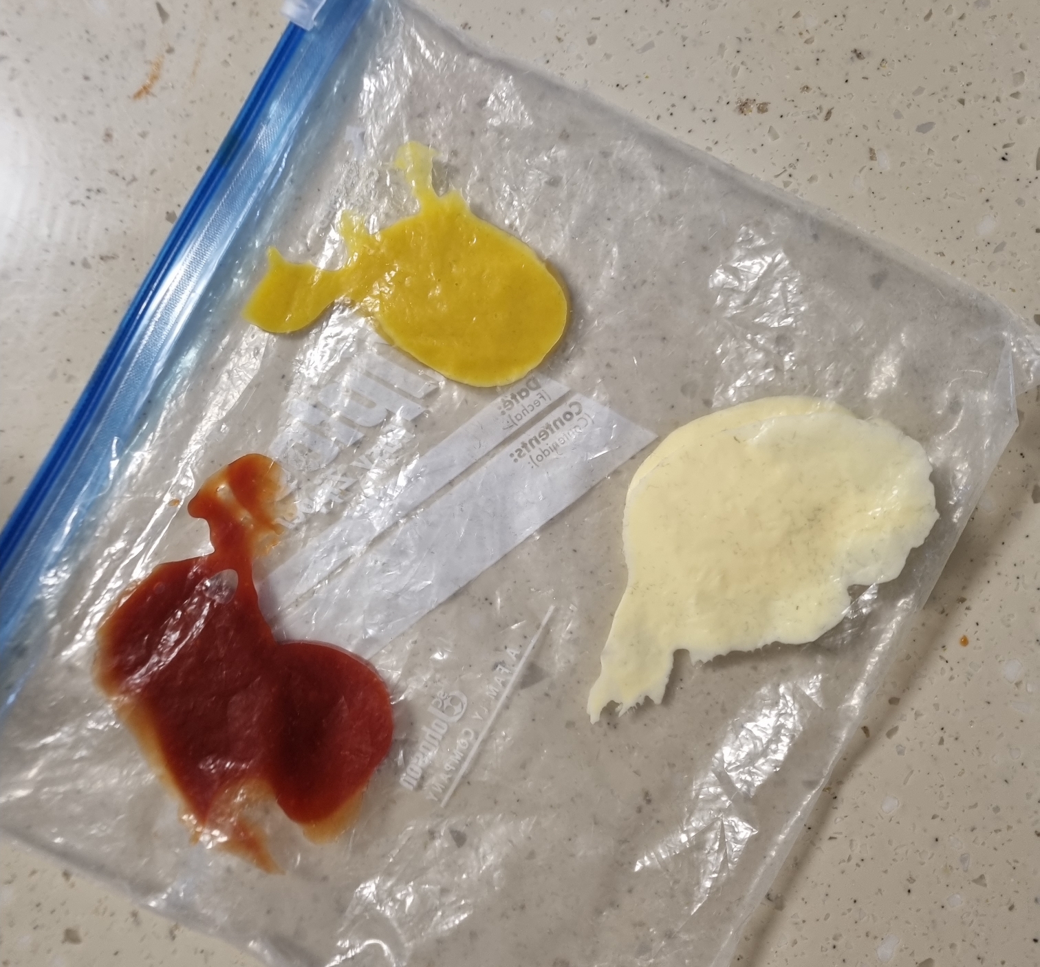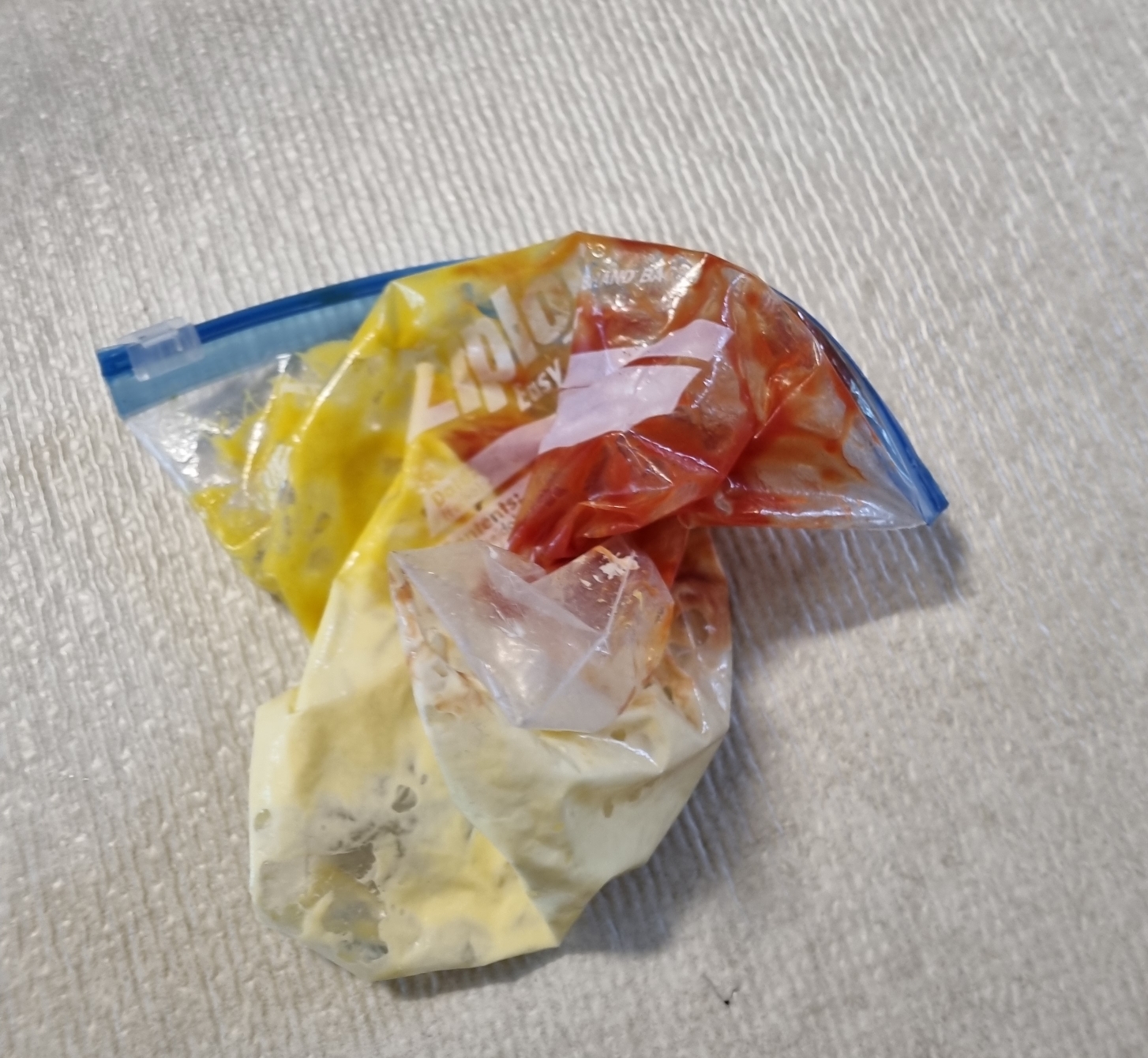 그렇지만 이렇게 2호때 다시 해보며, 어차피 버릴 소스류와 여러번 사용해서 마찬가지로 어차피 버릴 지퍼백으로 놀이하는 건 아깝지 않다는 생각.