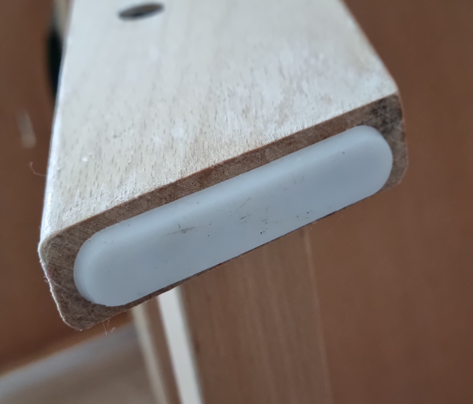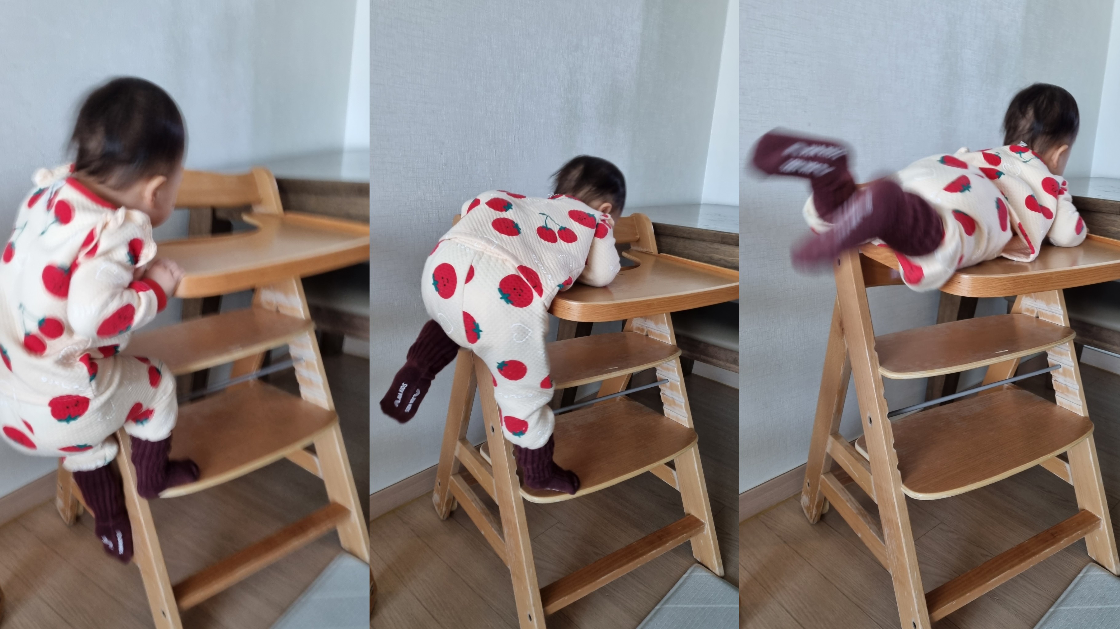 - 식탁과 앉는 자리 사이가 좁아서 그 틈으로 아이 혼자 스르르 내려오진 못한다.