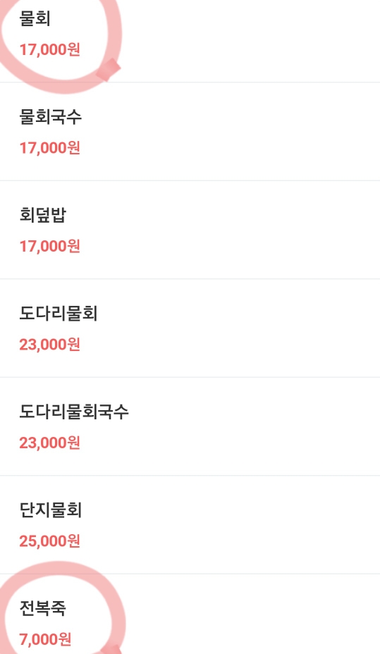 가장 많이들 시키시는 메뉴는 역시 물회.