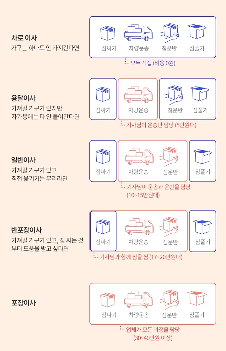 아이들이 있어서 반포장이나 그 이하 서비스의 이사는 엄두를 못 내고, 포장이사업체로 알아보았어요. 이사 자체도 일이 많은데 포장이사로 선택하길 잘한 것 같아요.