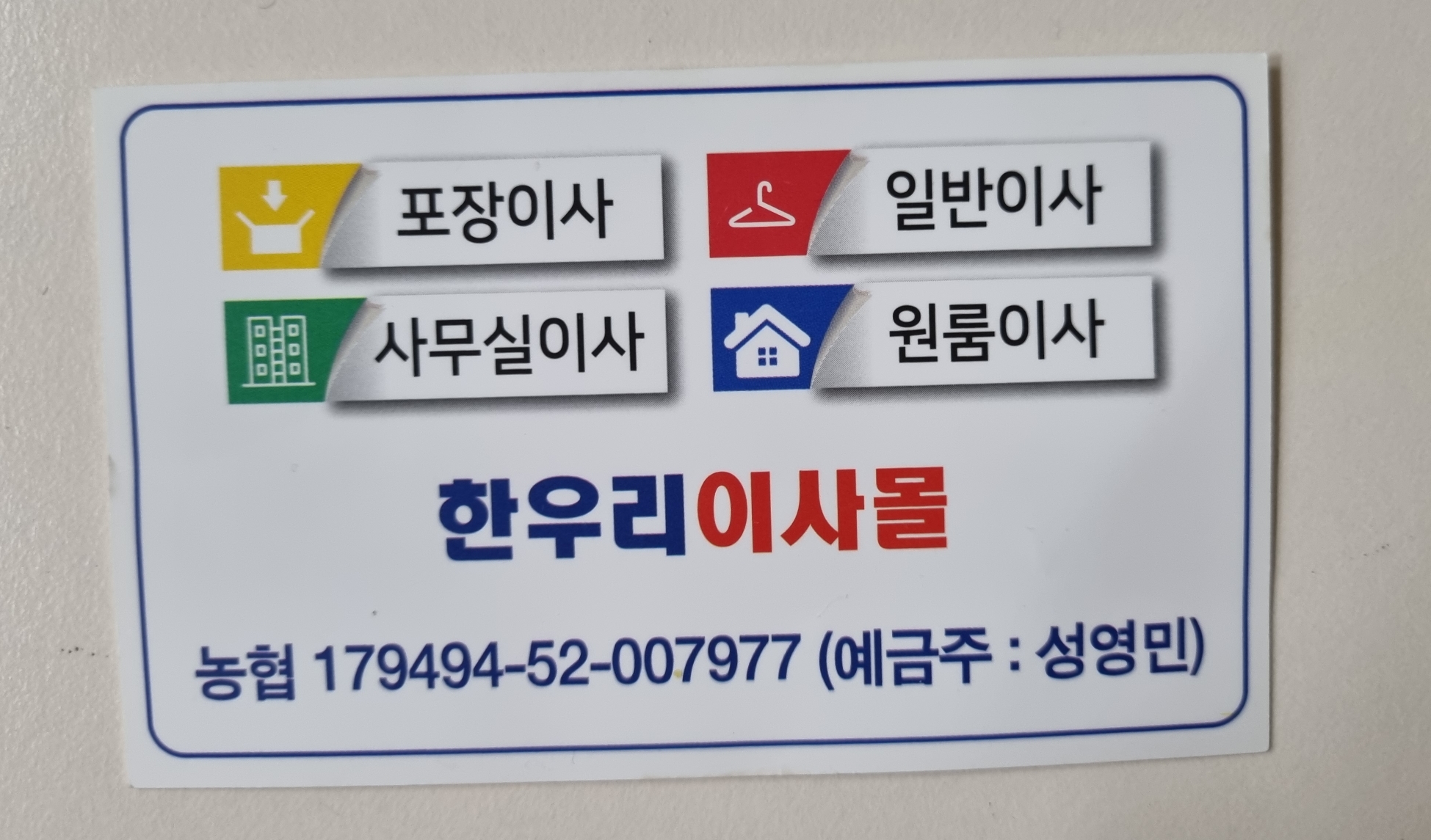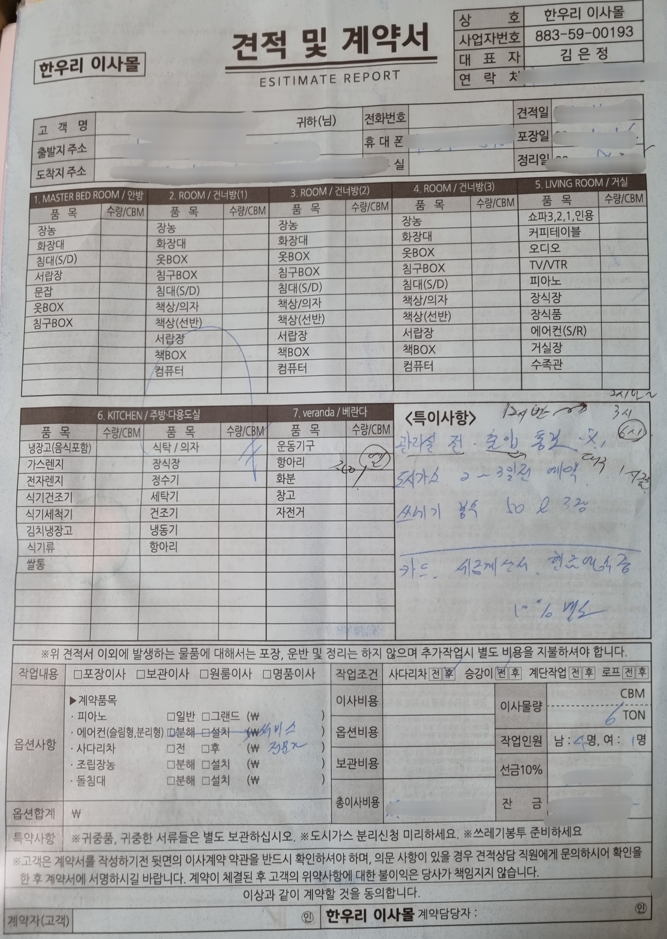 당연히... 가격도 비슷하다면 상대적으로 전문적인 느낌도 나고 이용자 배려 측면의 마인드도 느껴지는 B 업체이자 한우리이사로 결정하였습니다. 견적을 더 받아볼까도 싶었지만, 한우리에서 받아본 견적이 만족스러워서 충분할 것 같았어요.