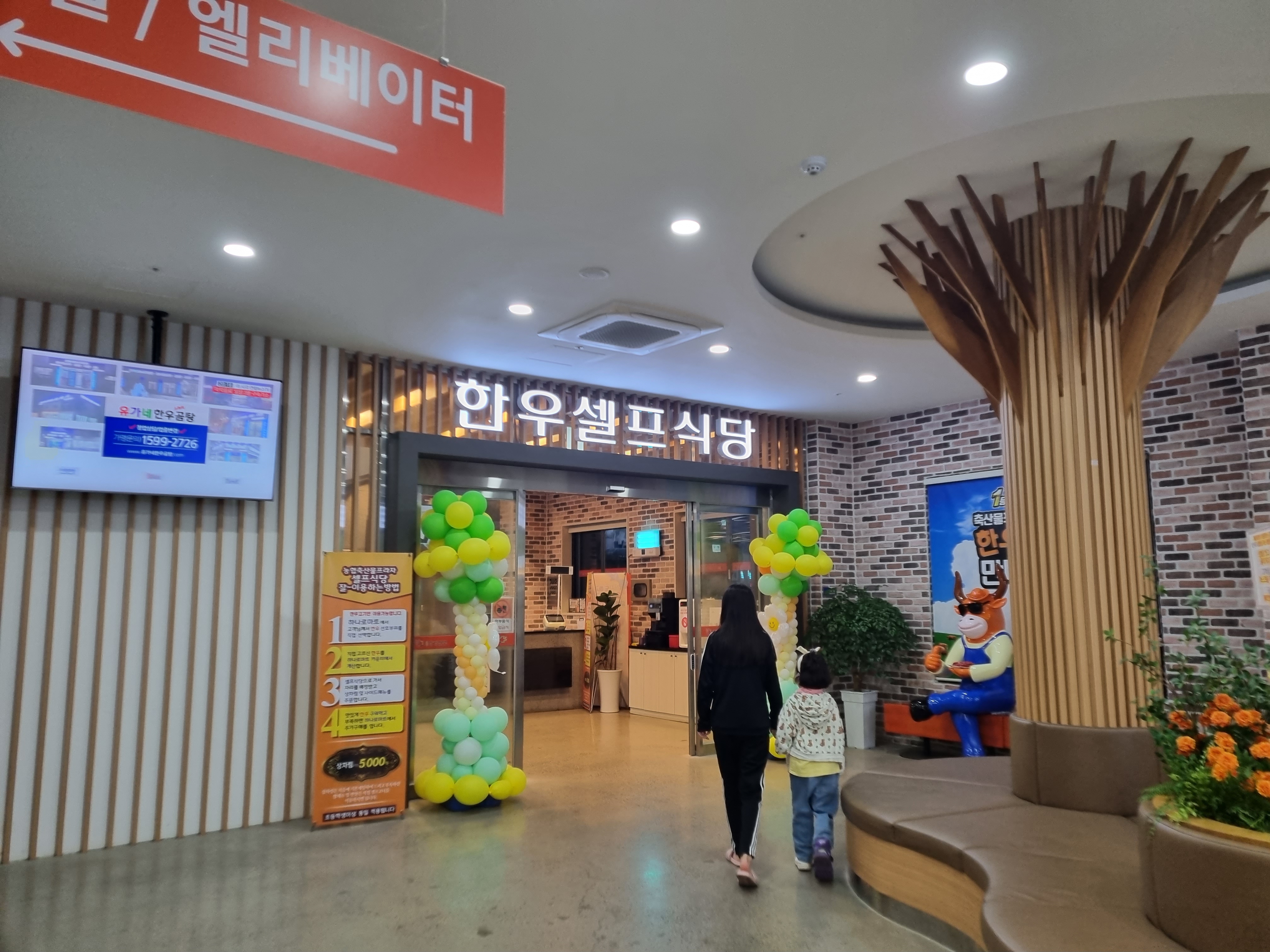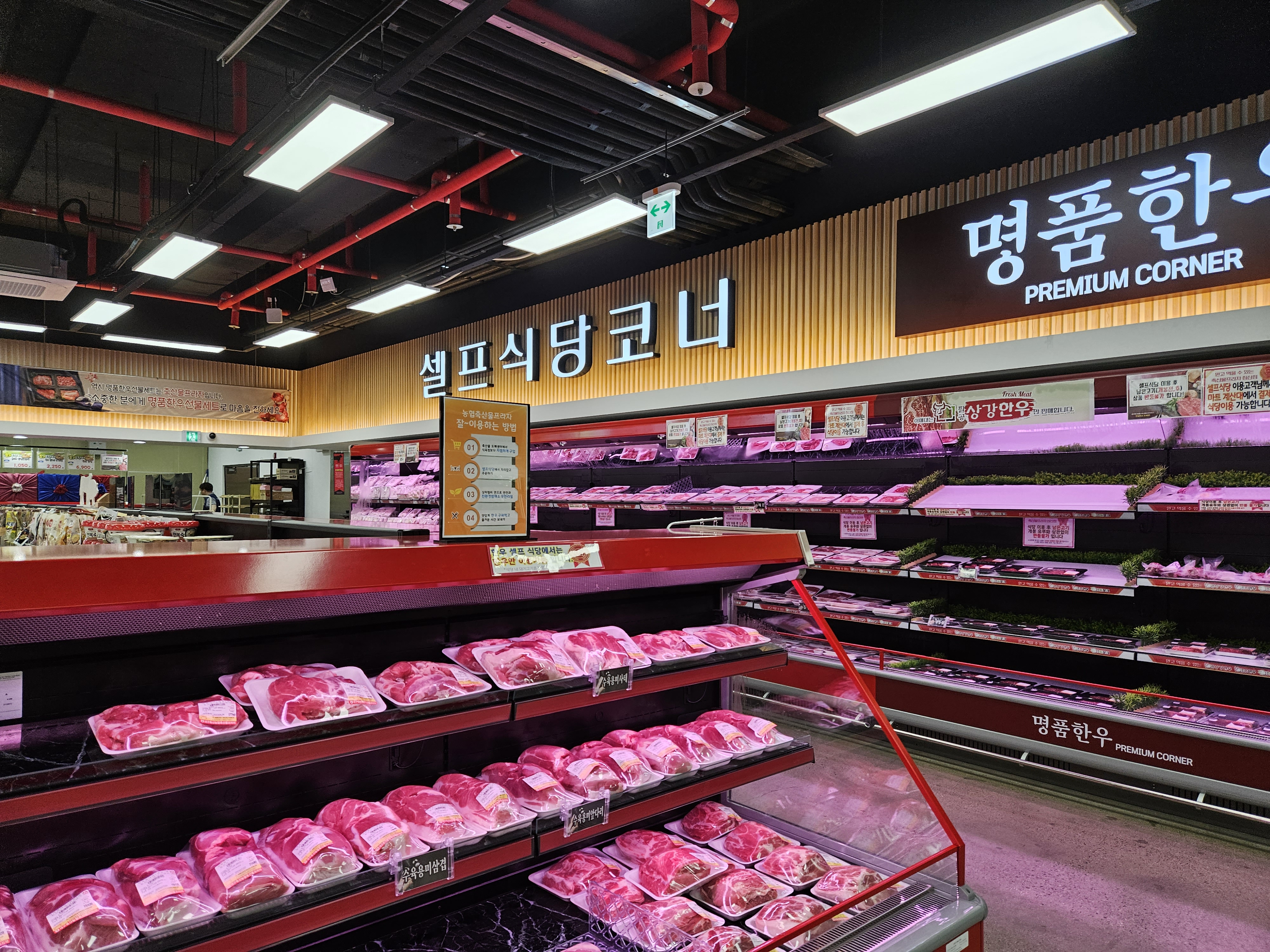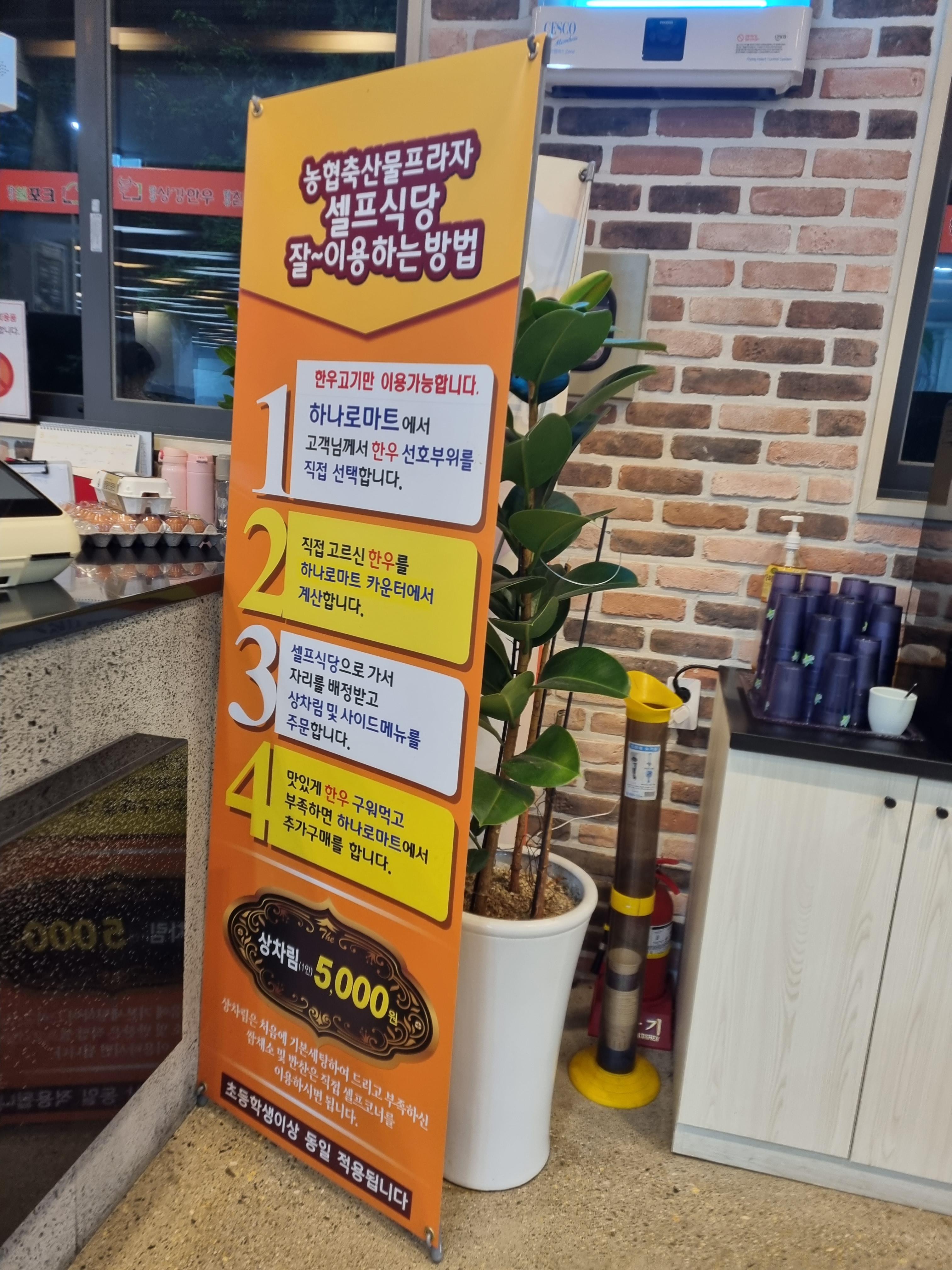 셀프식당코너에서 고기구입, 계산 후 셀프식당으로 이동하여 구워먹는 시스템.