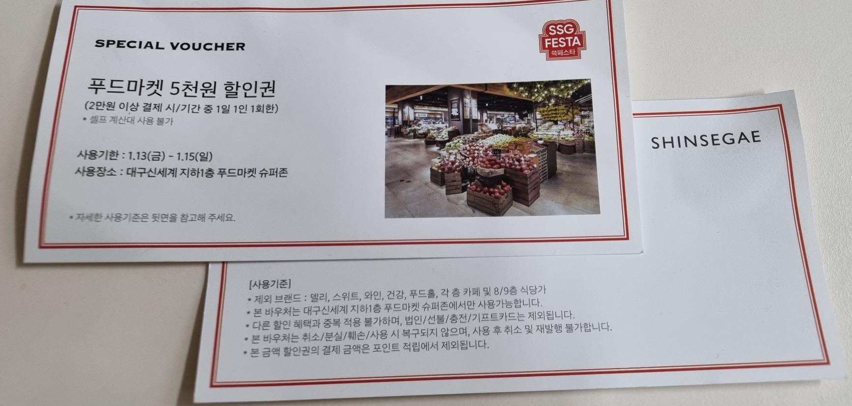 쓱 페스타 행사(23.1.2 - 1.15)의 일부로 럭키박스 뽑는 이벤트가 있어 참여할 수 있었어요. 신세계 어플에서 럭키박스 이벤트 쿠폰을 받아 직원분께 제시했습니다.