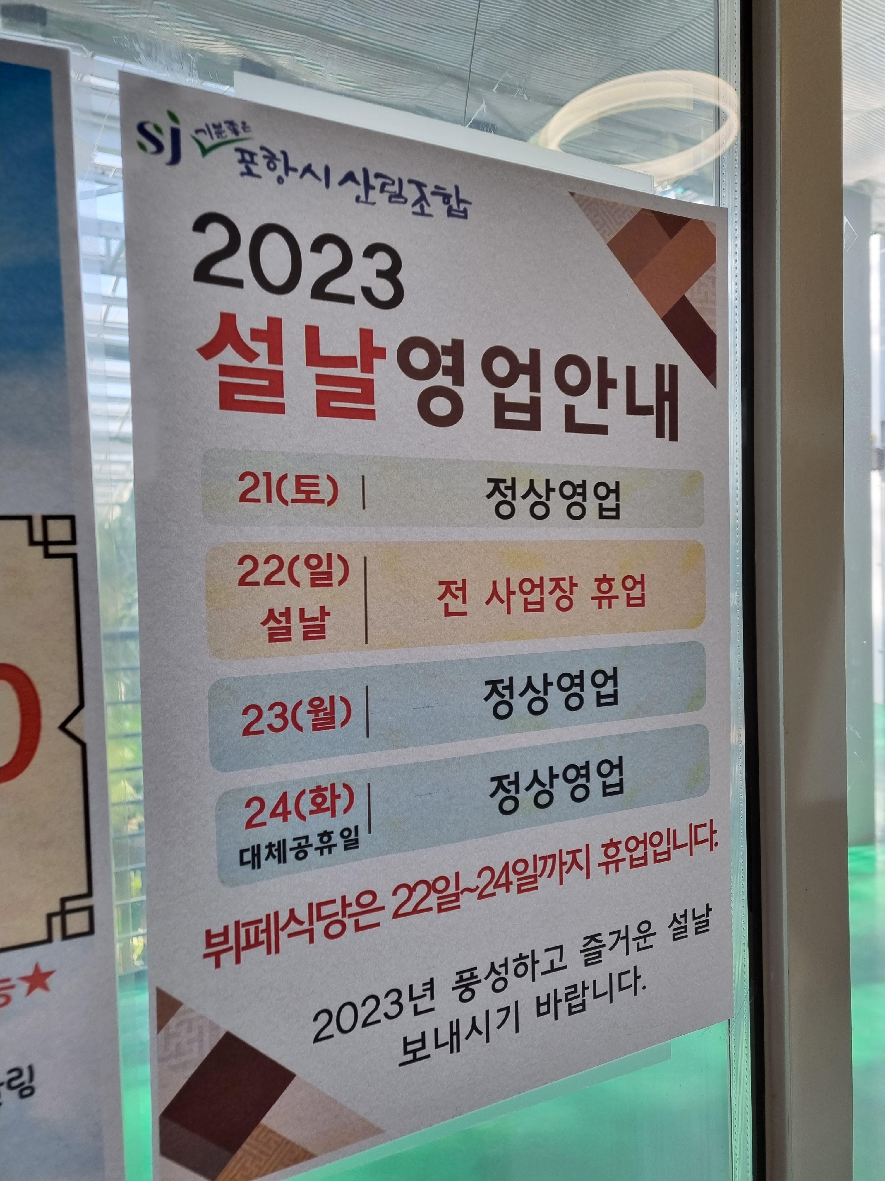 설 당일 전후 연휴 - 1층 임산물 전시판매처, 2층 뷔페 외 정상 영업