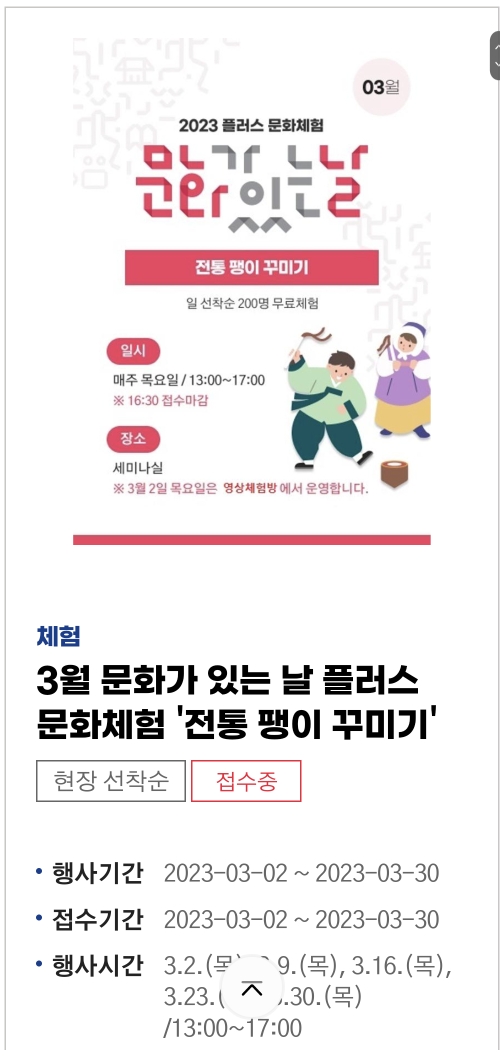 그러나 예약을 못하셨더라도, 인원이 다 차지 않으면 현장접수도 가능하다고 합니다 :)