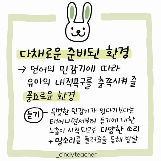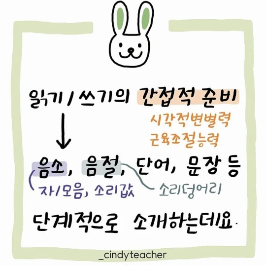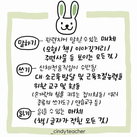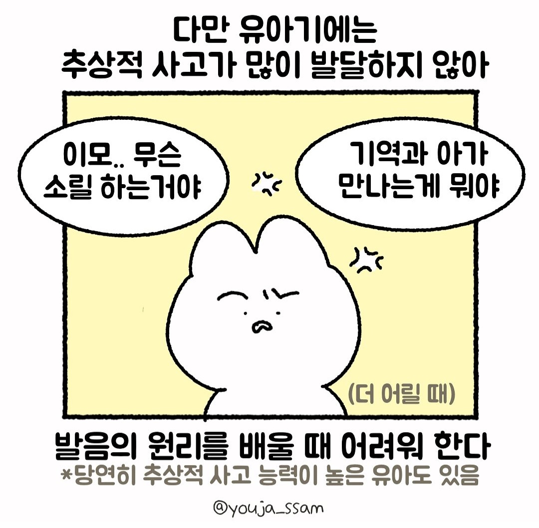 놓치기 쉬운 것이, 가정에서 아이와 얼마나 눈맞춤을 하고 대화하는가? 이다. 일정 시기가 되면 뗄 한글을 가르치겠다고 아직은 안될 아이를 잡고 있는 것보다, 아이와 대화를 하고, 책을 읽고 회상/정보를 끄집어내는 (말로 표현) 시간을 갖는 것도 중요할지도...