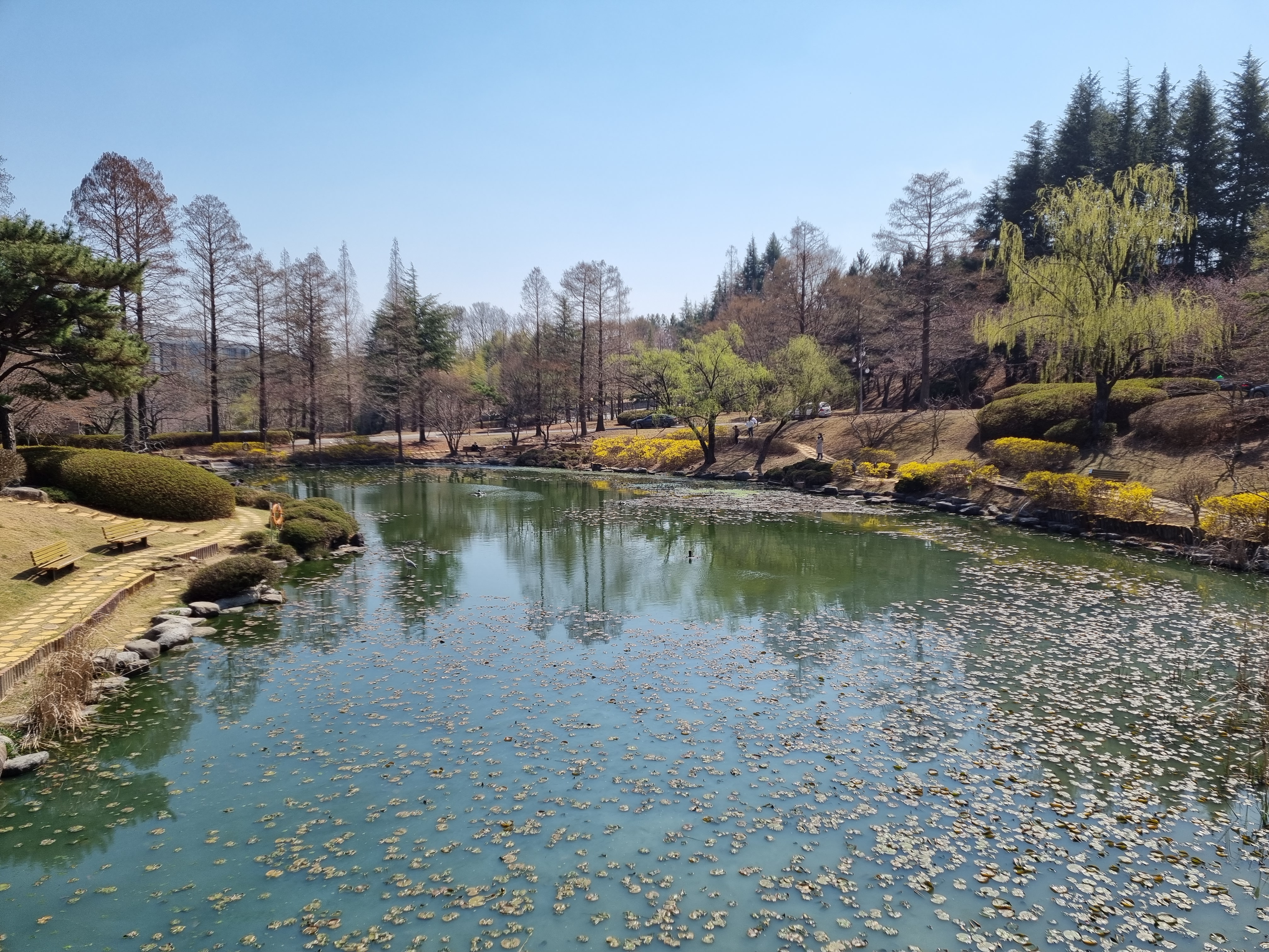연못 가운데 옹기종기 모여 햇빛을 쬐는 거북이? 자라?들... 움직이지 않아서 거북이인줄 생각도 못했죠 ㅋㅋㅋ 청둥오리 한 쌍도 보였고, 그 옆에 날아다니던 기러기....