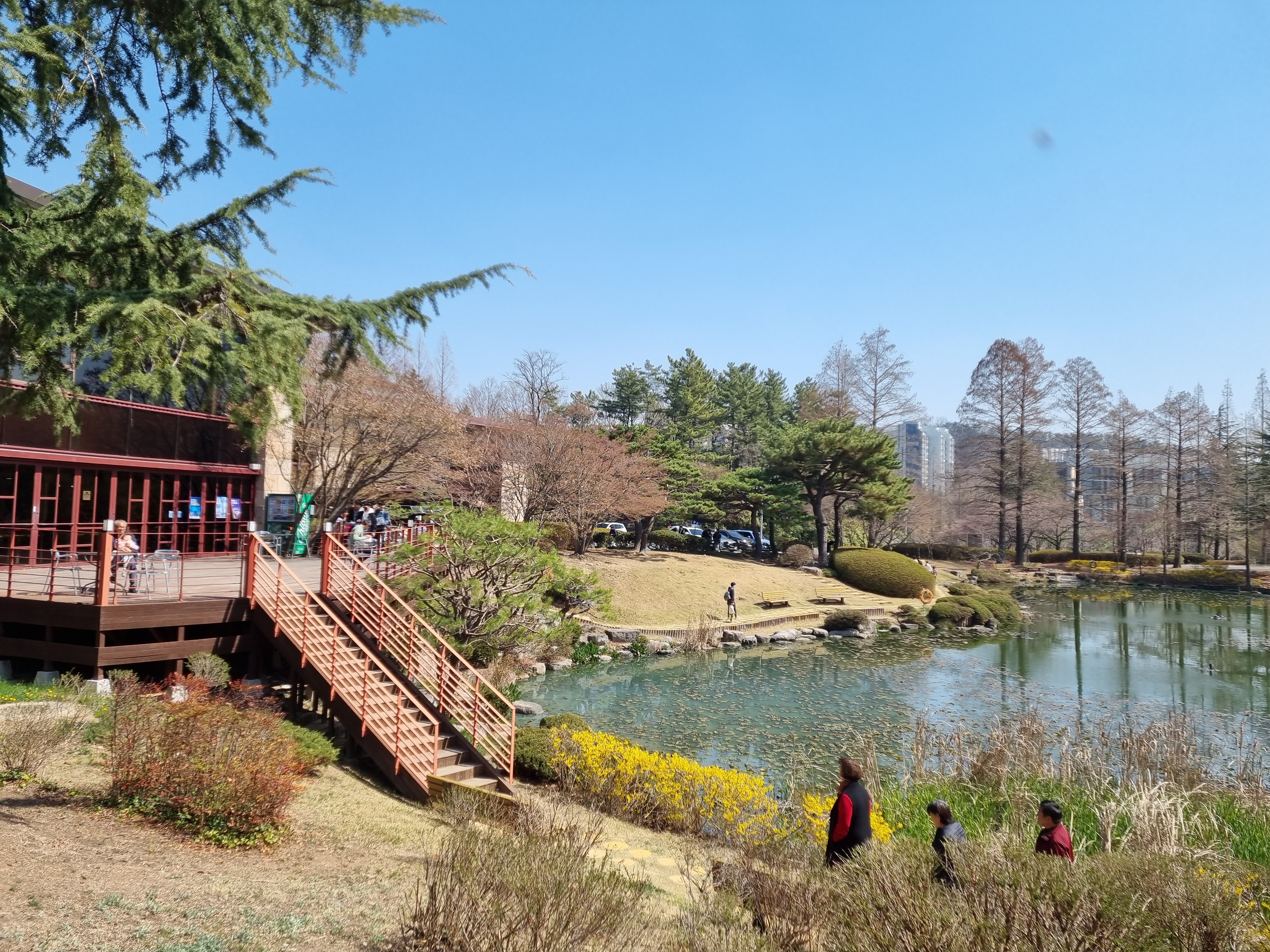 데크공사를 해서 경사로가 생김. 유모차로 연못 쪽으로 내려갈 수 있을 듯.(내려는 가나, 이 외에는 흙길이라 유모차로 돌아보긴 어려울듯.) 메타세콰이어 나무.
