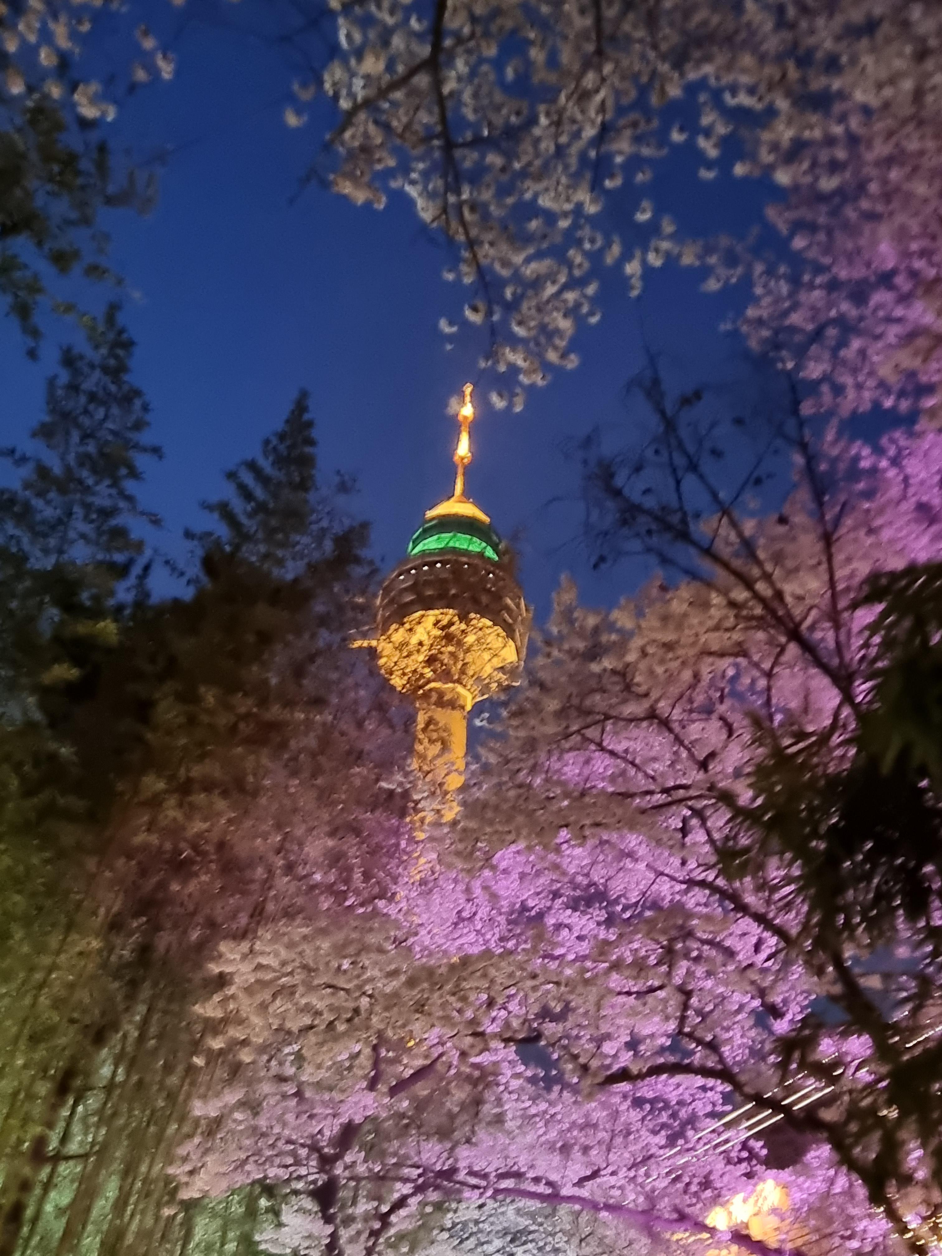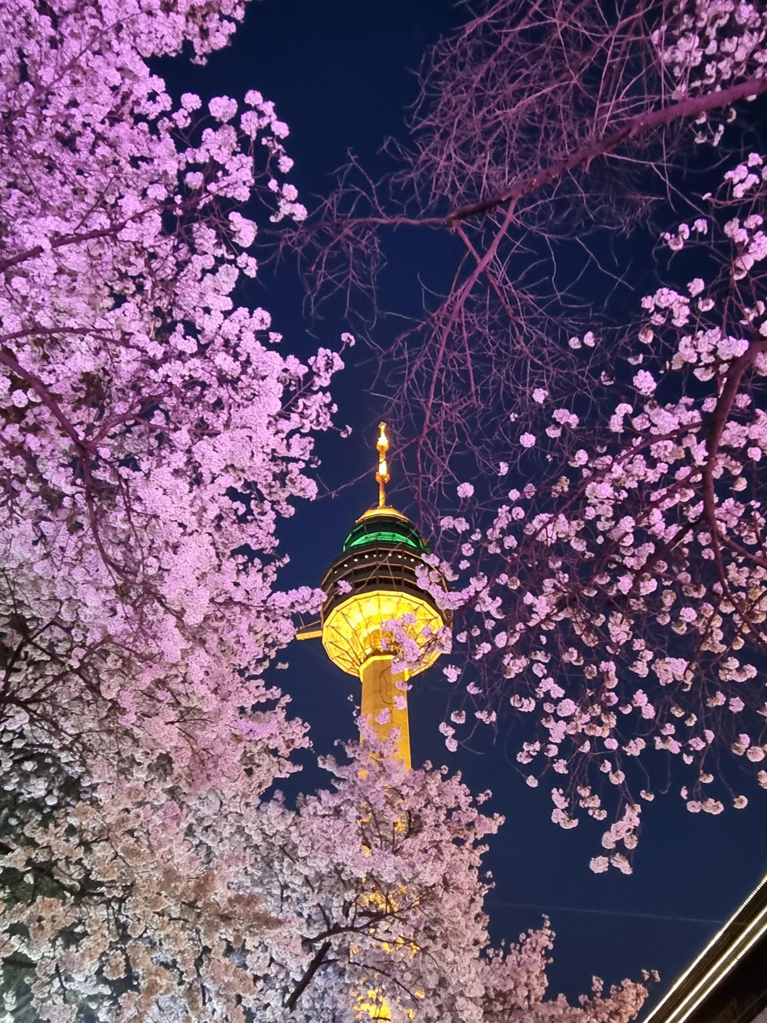 야간 조명 -> 분홍 벚꽃으로 유명한 두류타워.