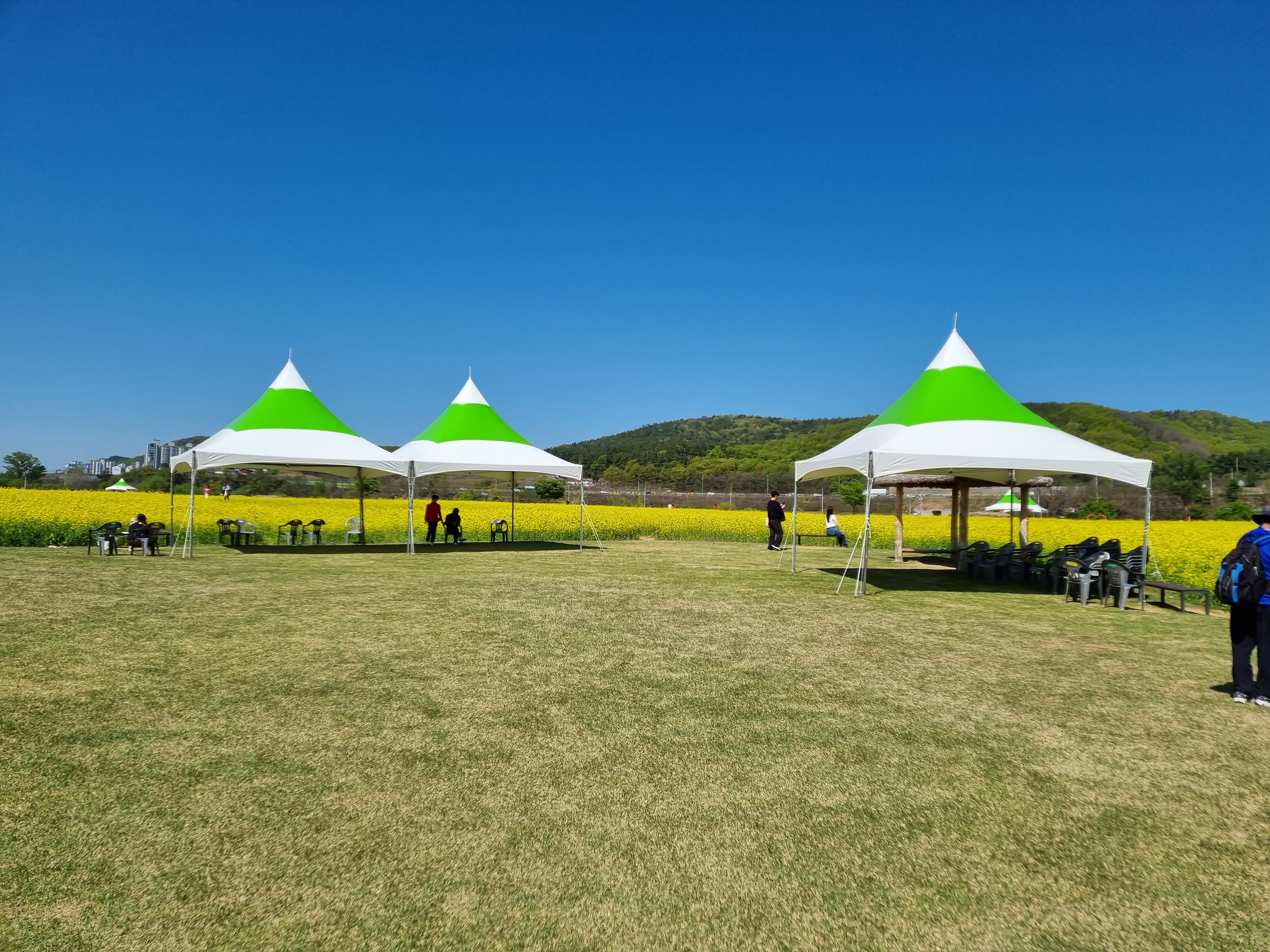 주차장과 유채꽃밭까지는 거리가 꽤 있어요. 안아가기에는 꽤 긴거리를 걸어 들어가야해서(약 5분 가량) 어린 아기들의 경우 유모차가 필요해 보였어요.
