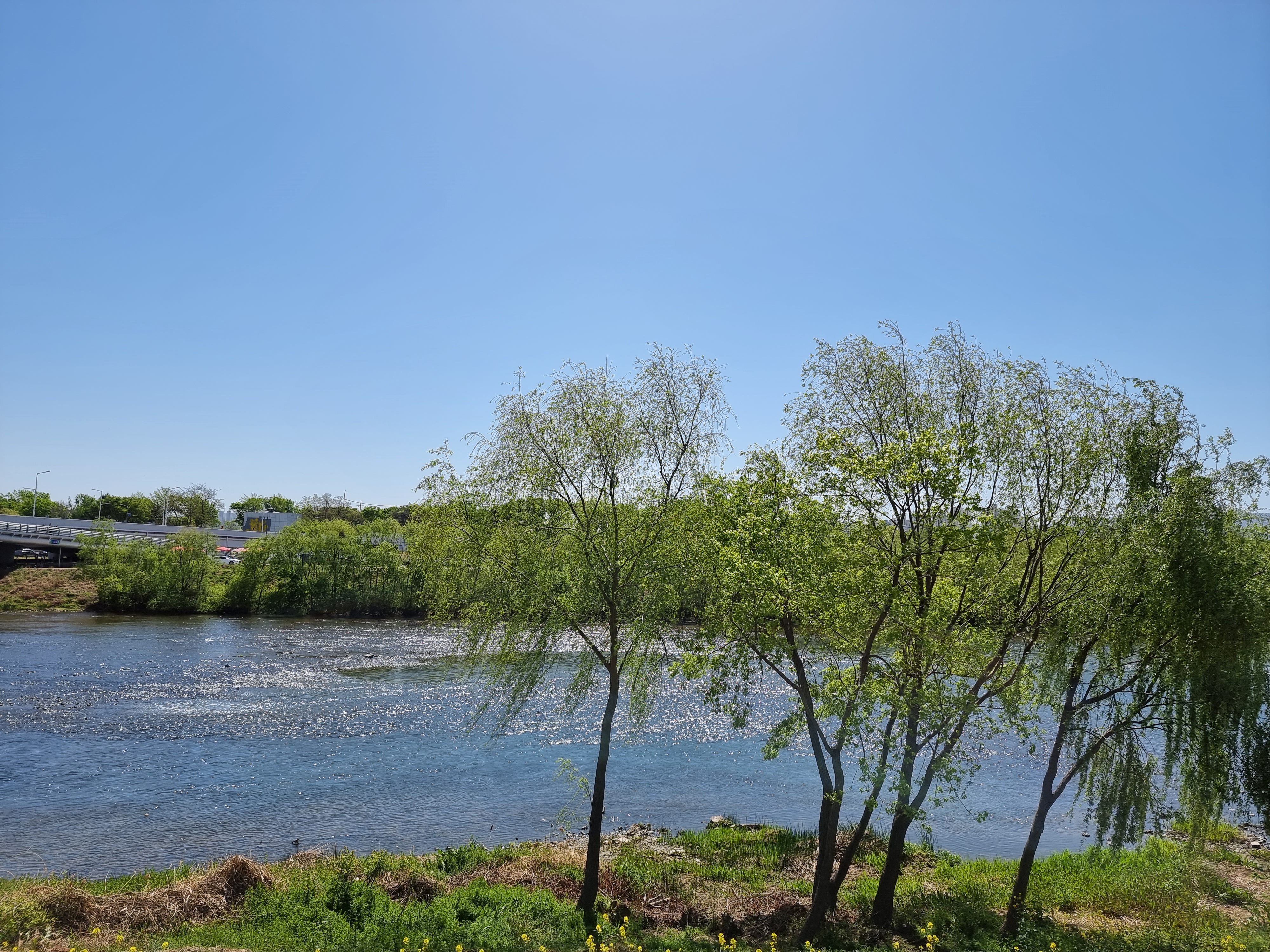 한쪽은 강가와 자전거도로.