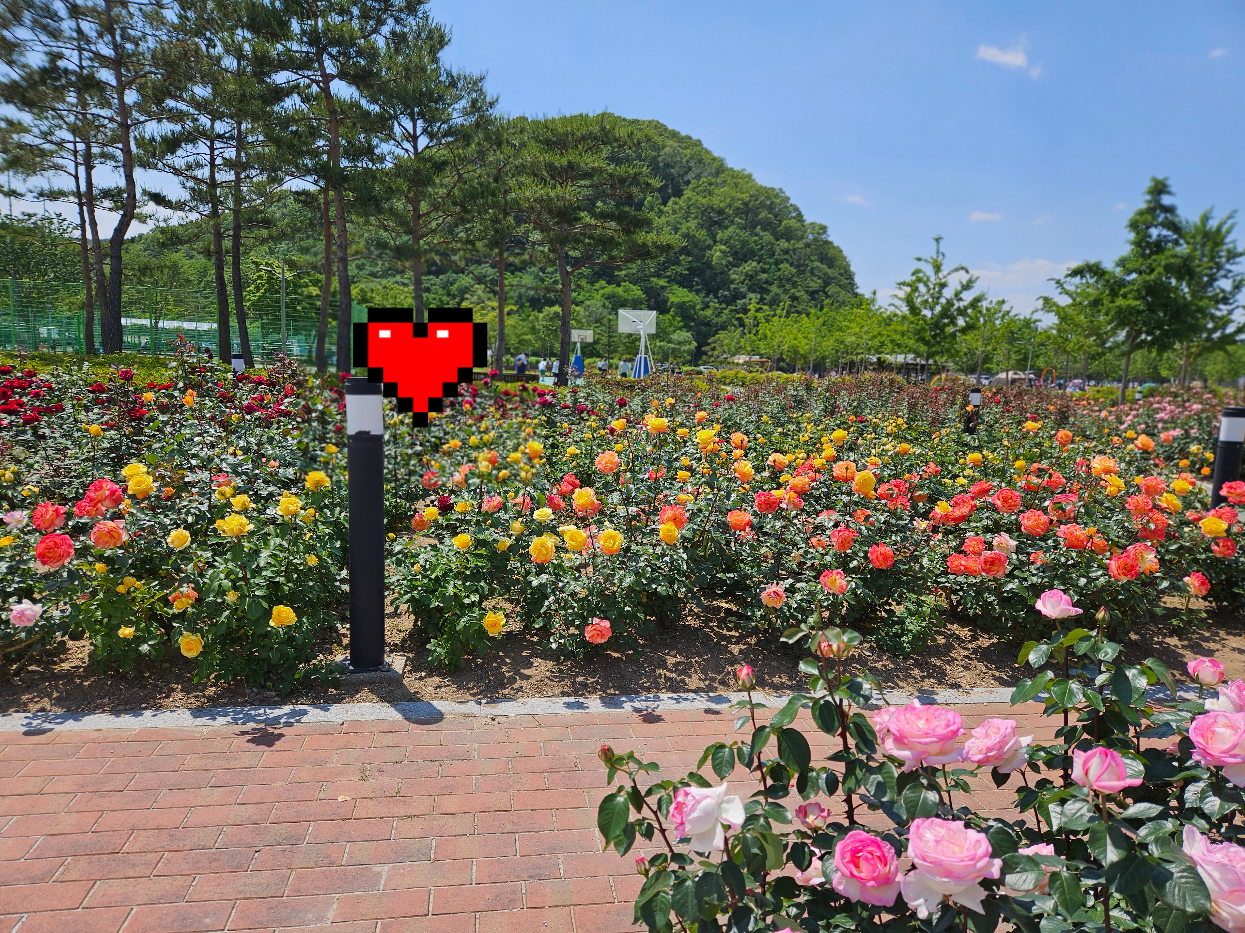 주차장 옆으로 보이던 장미밭. 장미가 좀 시들긴 했으나 여러 색상의 장미가 보였어요!