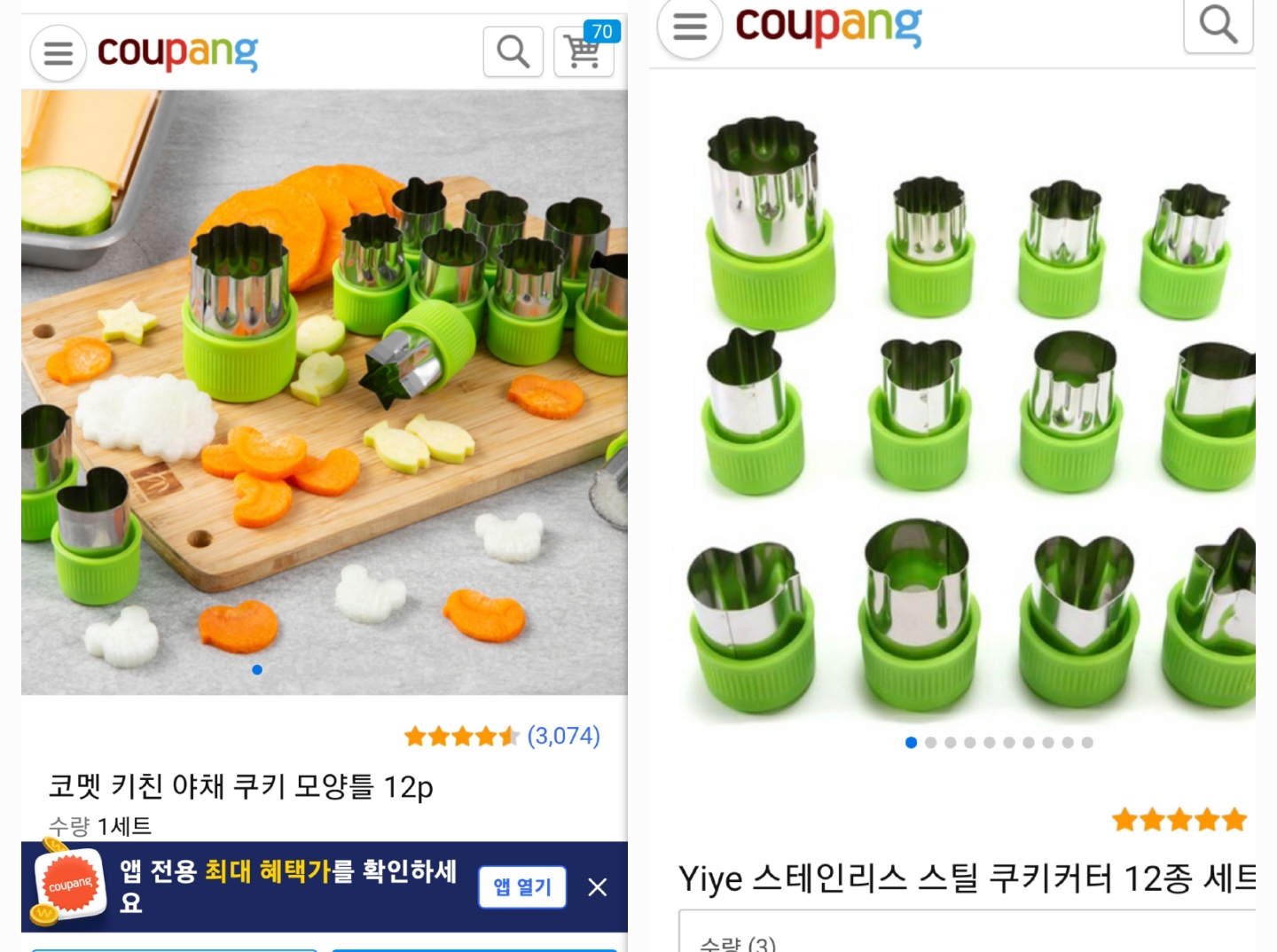 왼쪽 제품이 리뷰도 더 많고 가격도 더 비싸지만(5천 원 대) 오른쪽 제품은 중국직구 제품으로, 통관번호를 입력해야 하고 포장 상태가 왼쪽보다는 부실하지만 가격이 더 저렴합니다(2천 원 대)