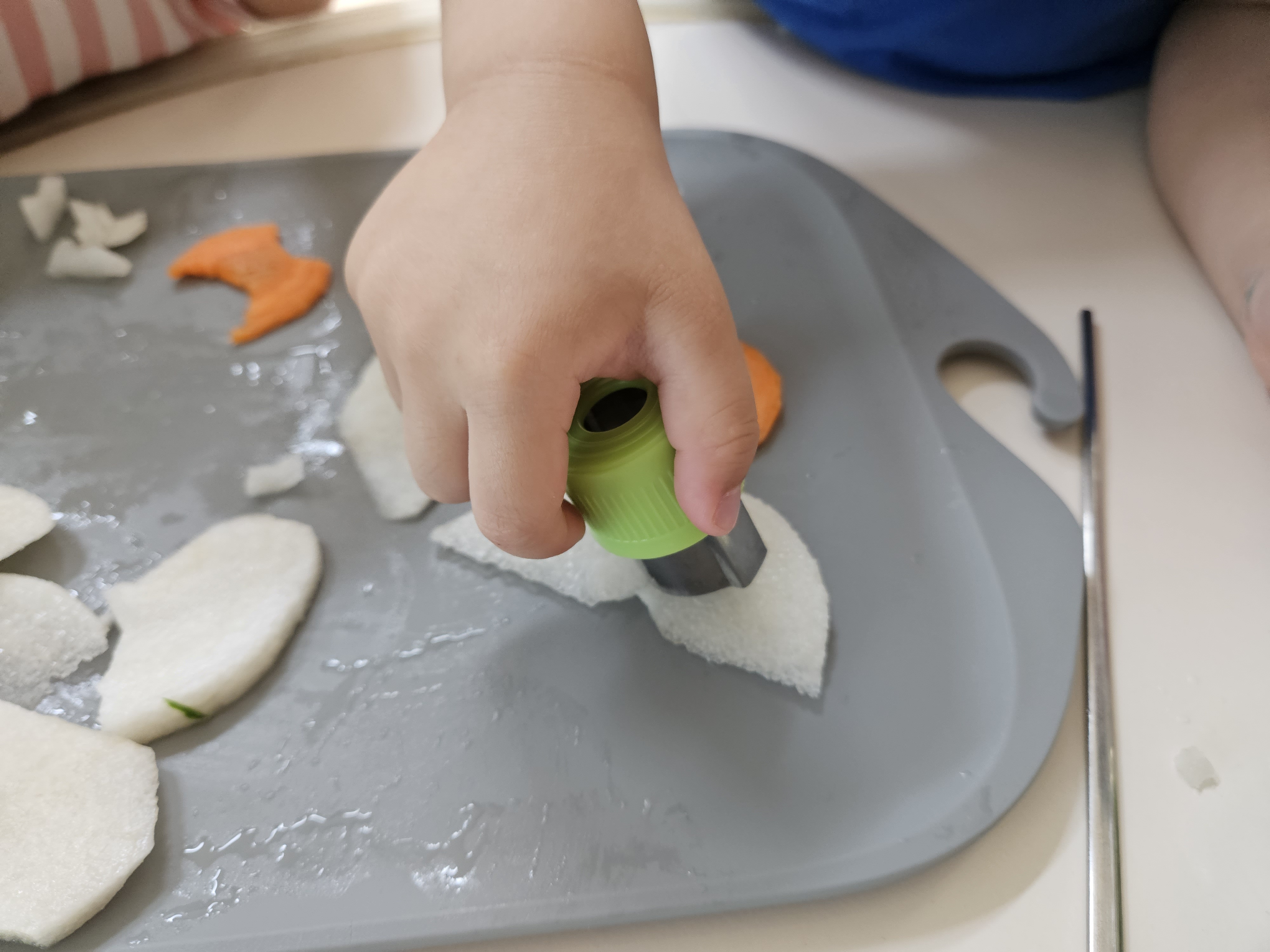 카레, 국, 등 각종 야채과일을 썰어 넣어야 하는 요리 및 쿠키 만들기까지 아이를 다양한 요리 만들기에 참여시키기 좋은 육아템인 것 같아요! 게다가 간단한데 비주얼은 그럴듯하죠!