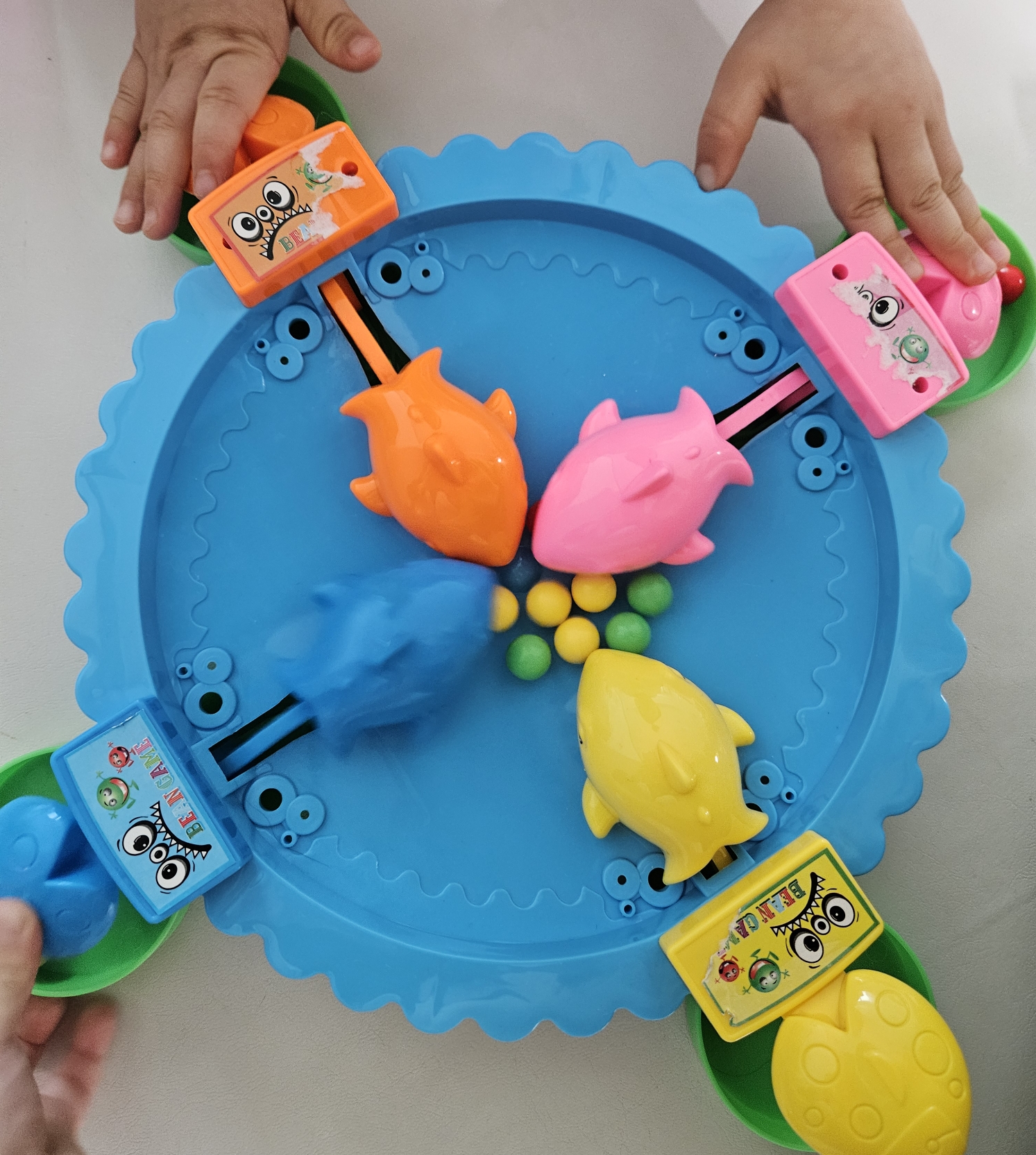 작동 방법은 무당벌레 스위치를 누르면 상어가 앞으로 당겨지면서 구슬을 가져가는 것.