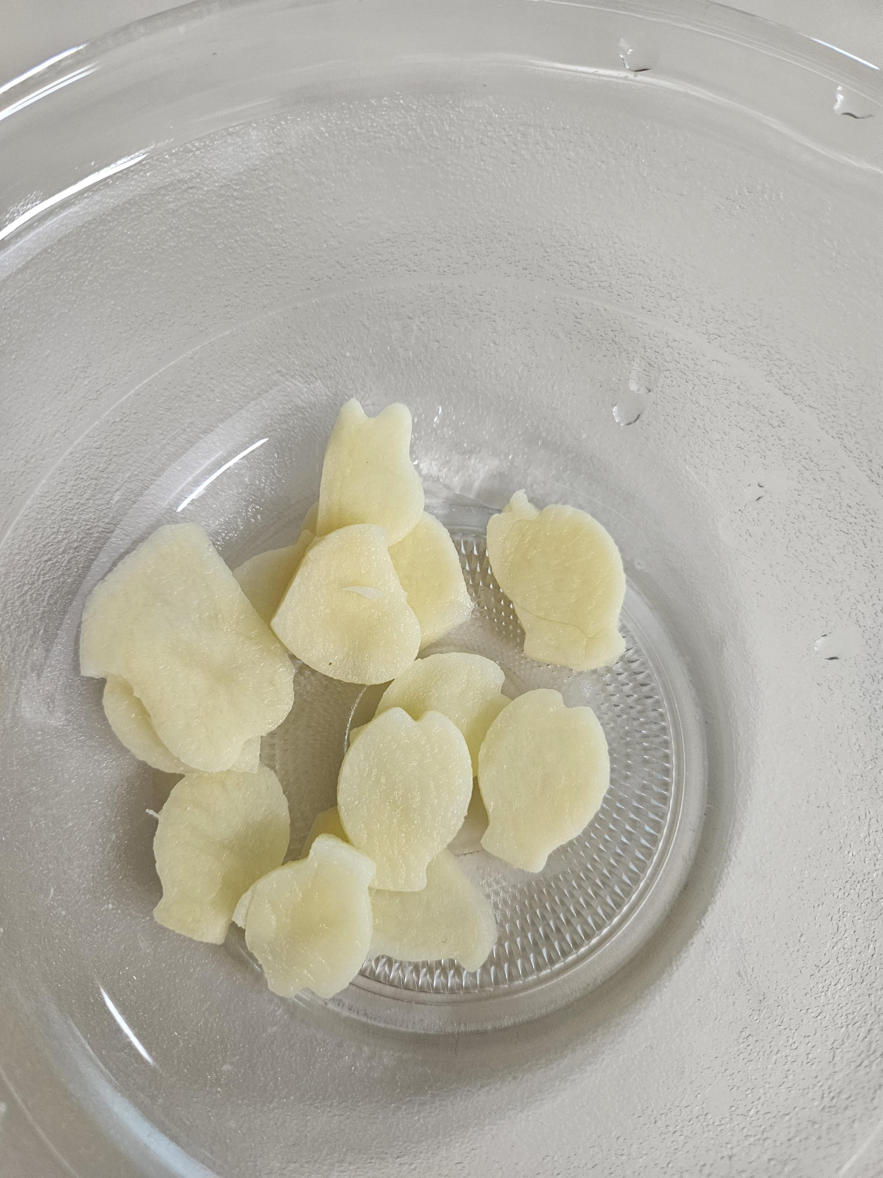 감자 껍질을 벗기고 얇게 썰어주었다.