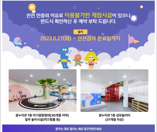 30개월 이하 영유아는 1층 아기꿈탐험대로 예약하여 이용하고,