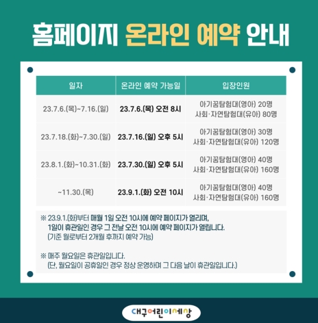 | [대구아이랑] 달서목재문화관 예약방법 & 방문후기 (1) | 2023.08.14 |