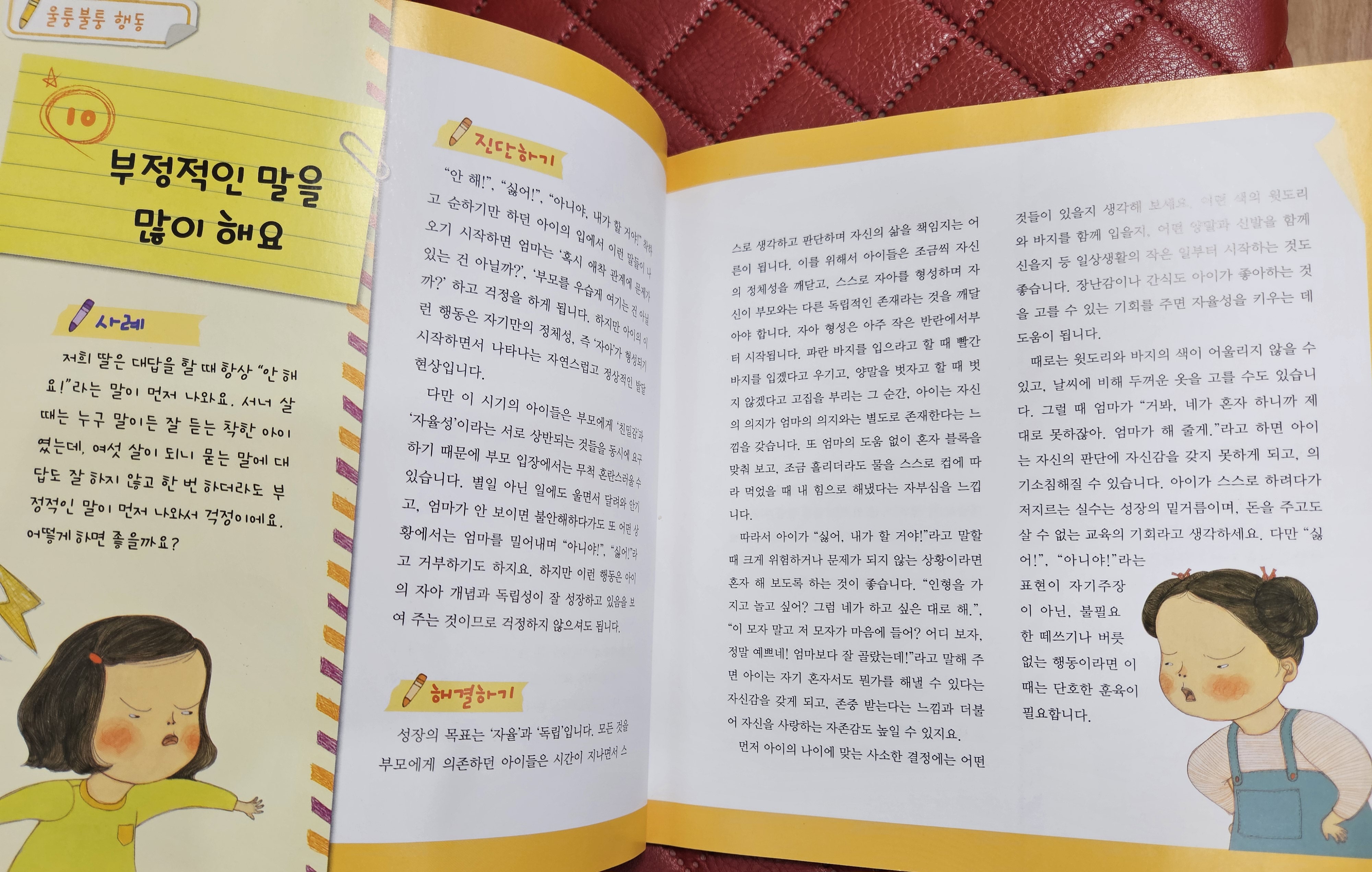 자주 접할법한 문제상황(아마도 훈육이 필요한 상황)과 그 해결방법들을 읽기쉽게 잘 서술해놓은듯!