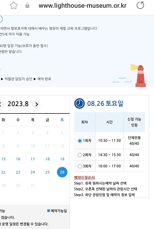 * 영유아 바다놀이터 예약신청 링크 https://www.lighthouse-museum.or.kr/kr/sub.jsp?code=H01040031