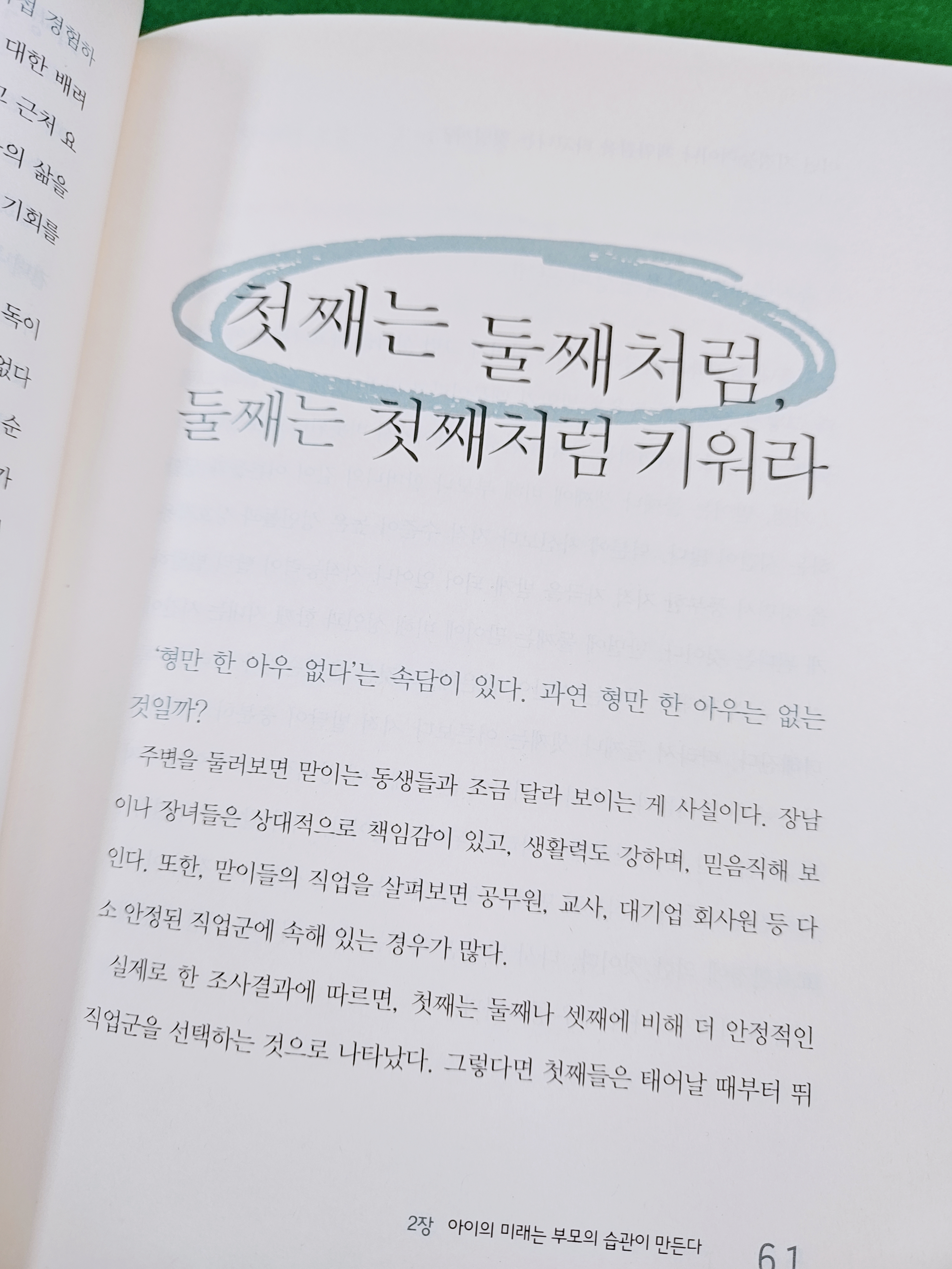 크게, 첫째 둘째 양육방식, 한글교육을 대하는 관점, 영어를 대하는 관점이 인상적이었음!