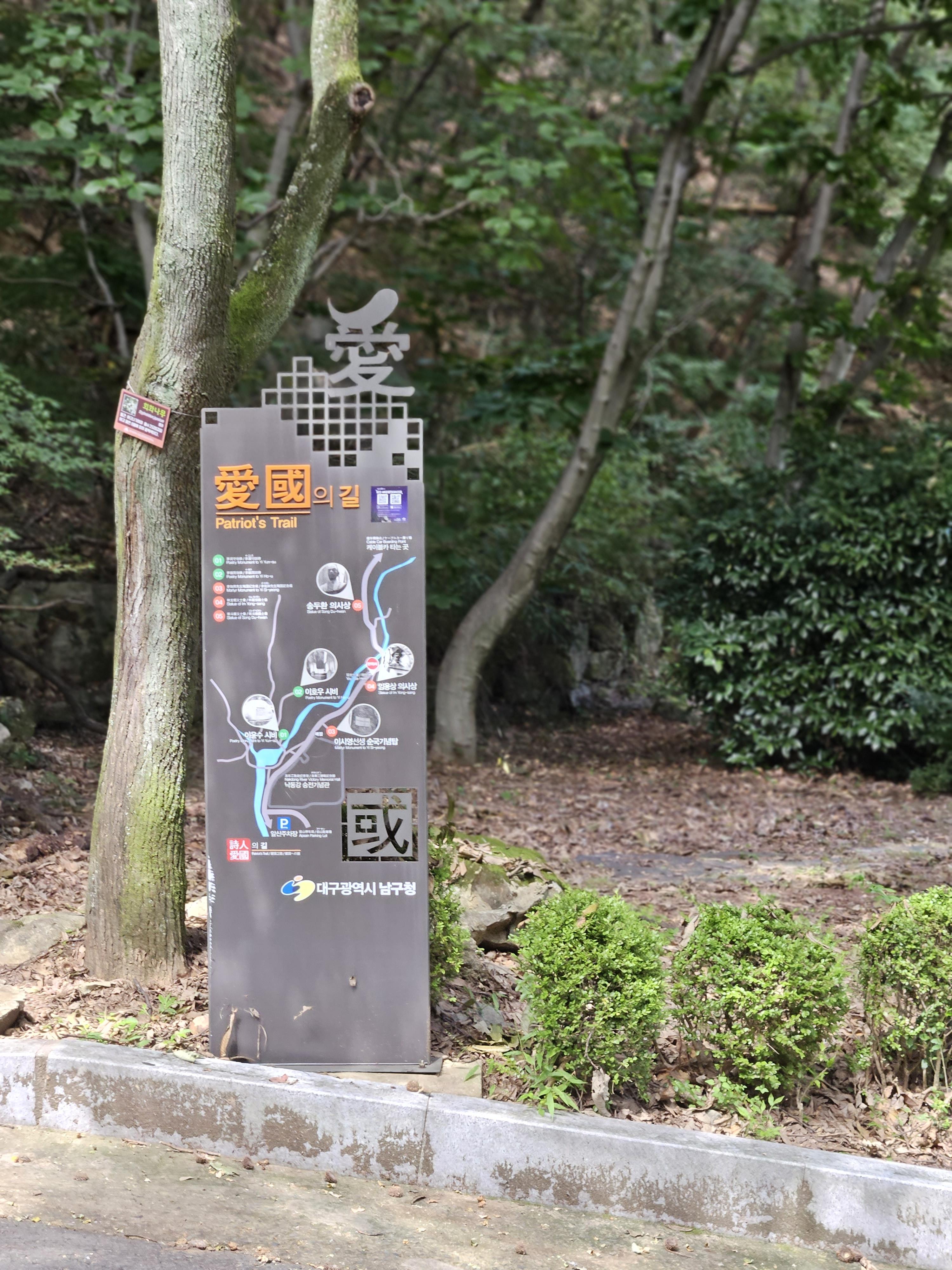 케이블카는 앞산 공원 내 낙동강승전기념관이 있는 큰골 자락길에 위치.