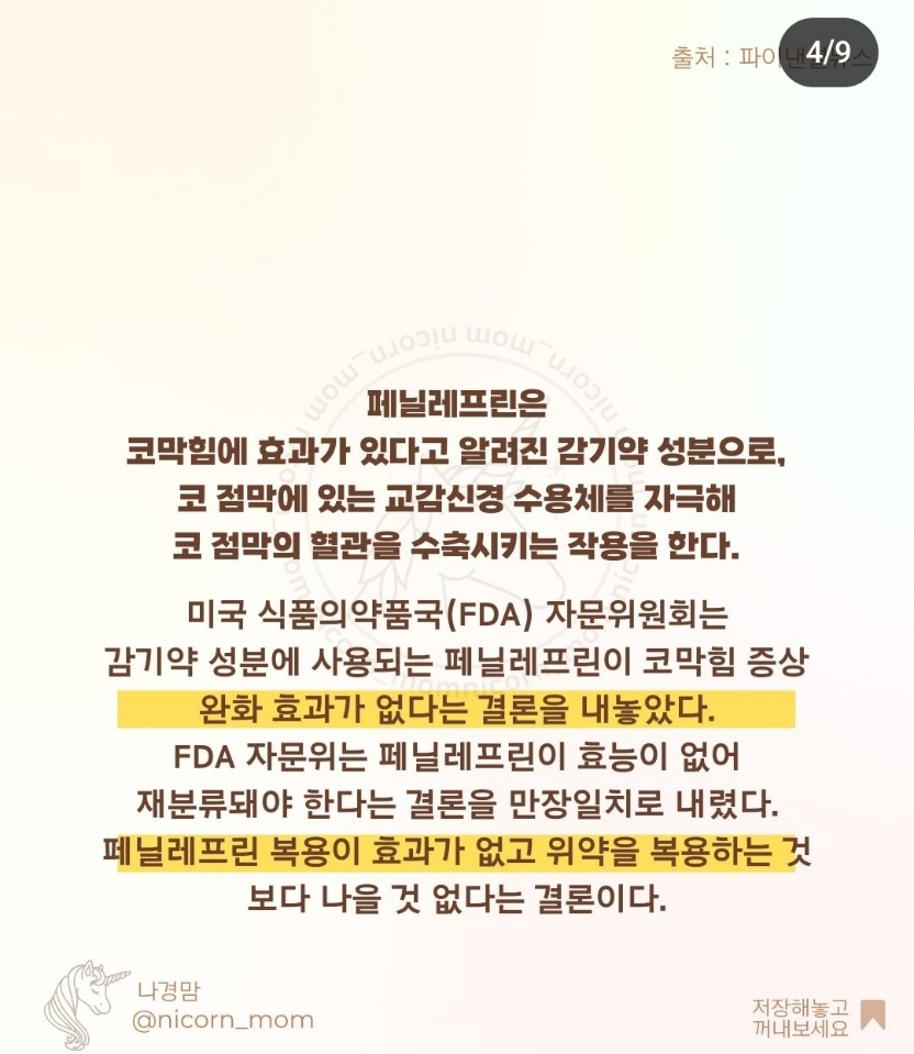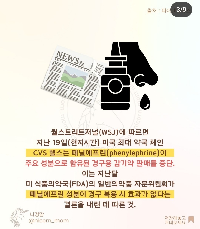 코감기 약에 든 ‘페닐에프린’… FDA 만장일치로 “효과 없다” - https://n.news.naver.com/article/023/0003788859?sid=105