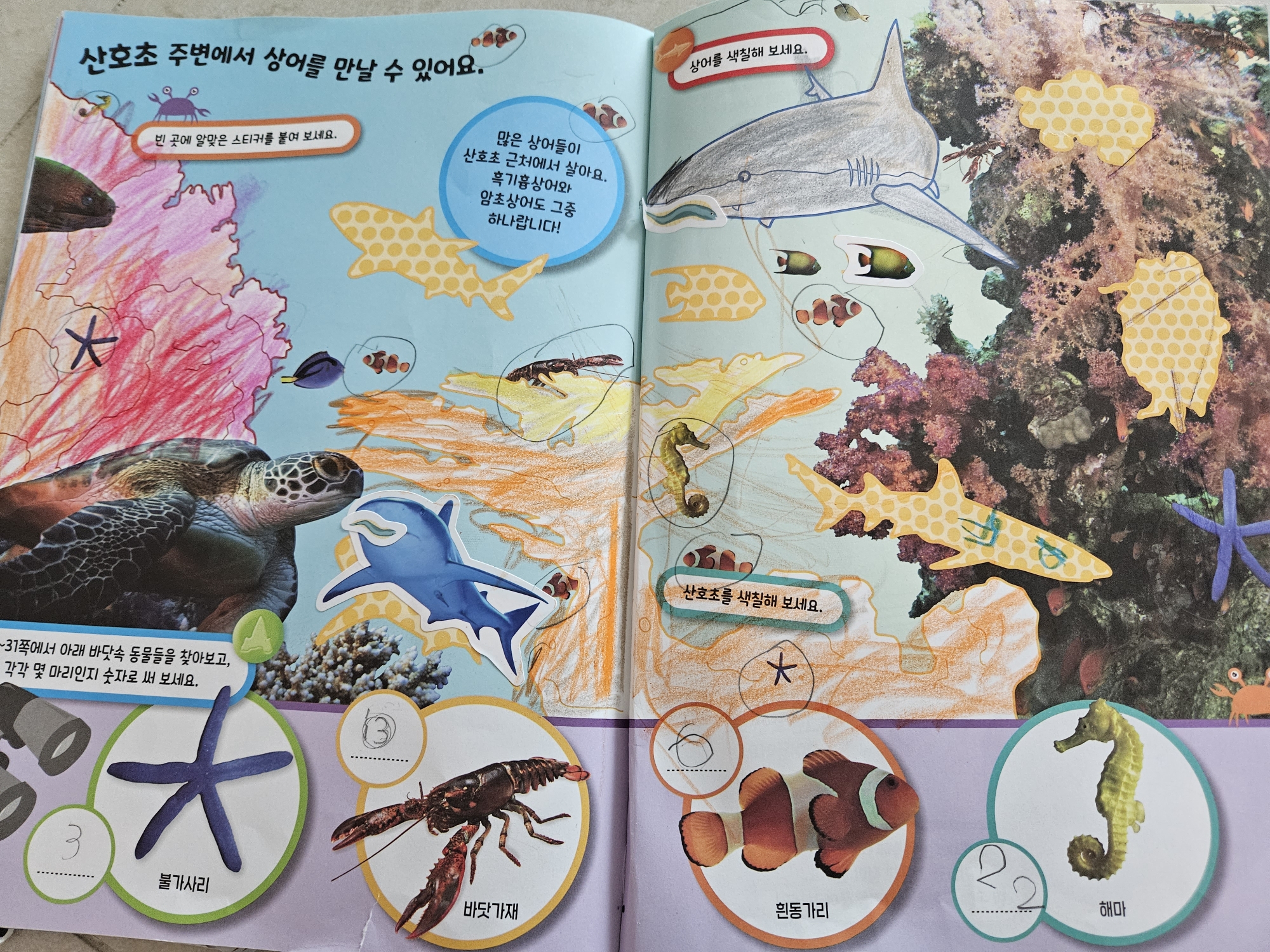 학습지를 풀릴려고 풀린건 아니고 심심해해서 이거 사줬는데 관심사에 딱 맞아서 재밌어함. ㅋ 근데 아직 처음 접하는 5세(만 4세)에게는 난이도가 좀 있어서 혼자는 못풀고 어른이 옆에서 붙어서 좀 알려줘야함.