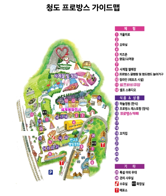 거울미로, 눈썰매장, 짚라인, 실내체험관, 포토스튜디오, 식당&카페, 글램핑&놀이기구